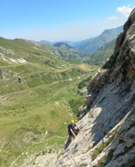 Altre due simpatiche cordate cuneesi sulla via oggi.. fatto la conoscenza con piacere di un mito dell’alpinismo piemontese come G.Ghigo, di ritorno sulle rocce dopo un pit stop forzato! Saluti a lui ed ai suoi soci Valerio e Silvano