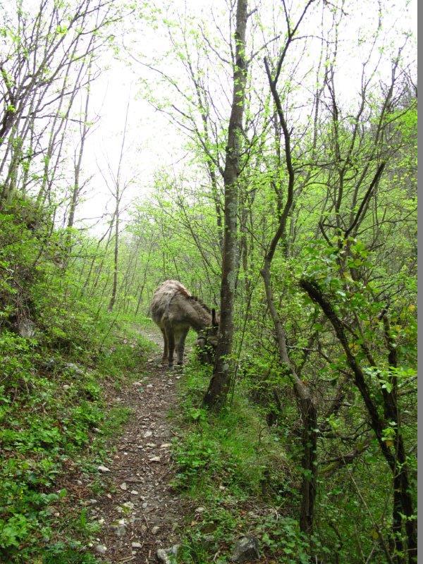 Oggi doveva essere una bella giornata e invece meteo bruttino, si va ugualmente. Nel paese non c’è più di segnavia ma ho messo le note per non perdersi. Incontrato un dolcissimo asinello che ci ha accompagnato per il primo pezzo. Dopo il ponticello e il guado iniziano subito i problemi, un primo grande albero ostruisce completamente il sentiero e bisogna passarci sotto a quattro zampe per proseguire. In seguito numerosi alberi abbattuti, dai più piccoli ai più grandi, che costringono a diverse peripezie per attraversarli, comunque si passa sempre anche se non sempre agevolmente. Alla chiesetta festa con numerose famiglie. Freddino in vetta e tempo uggioso che non invoglia certo a fermarsi. Molte persone in giro. Oggi in compagnia di un’amica che di sicuro qualche maledizione me l’ha mandata!!!