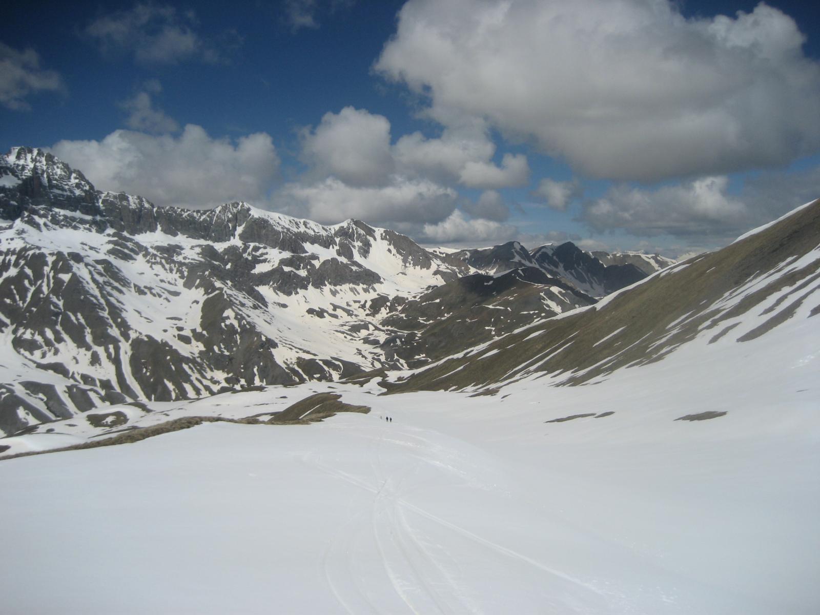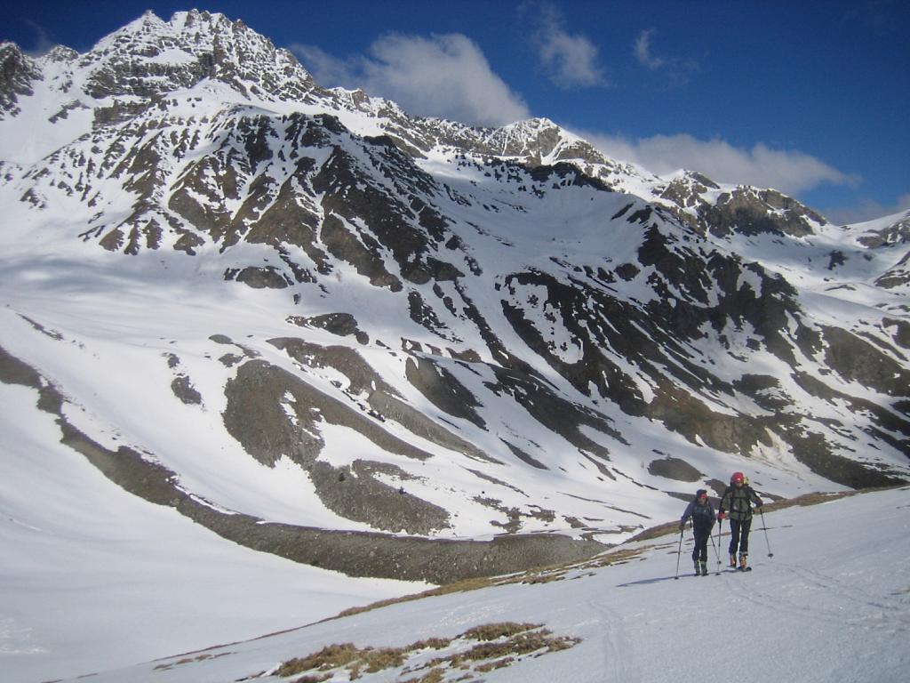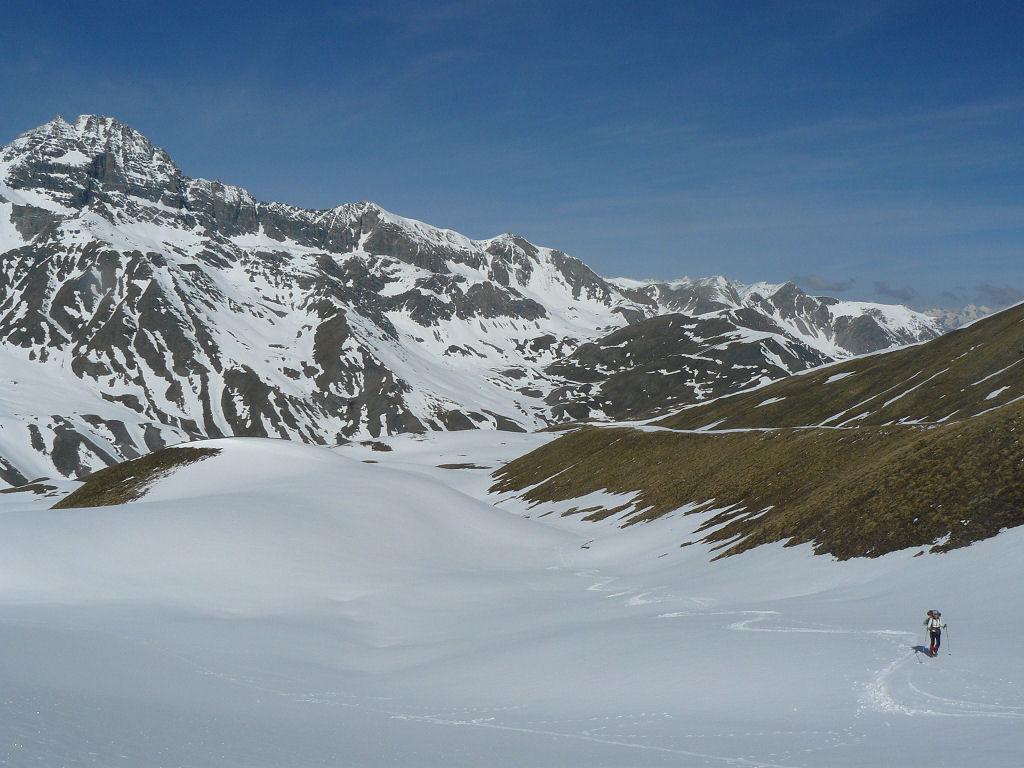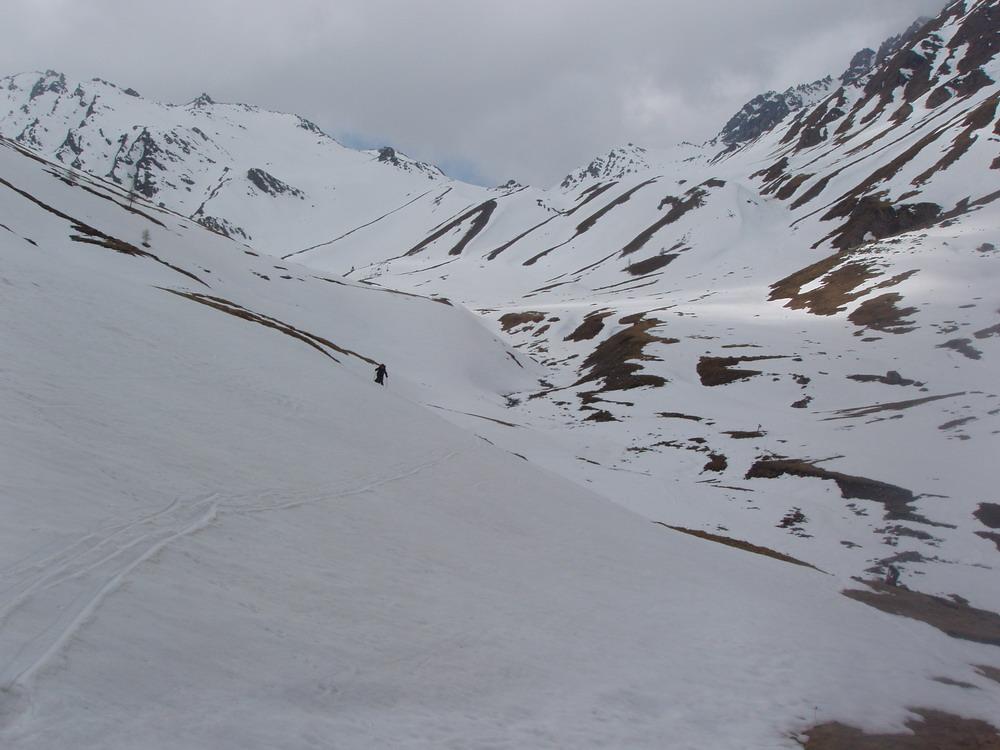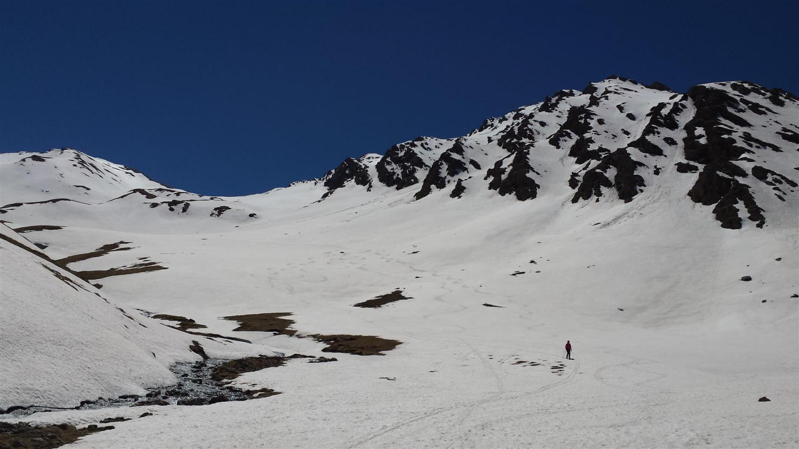 Ci si innalza per questo valloncello fin quando si può traversare a destra (sud) e si raggiunge la conca tra il Pic Lombard e il Petit Rochebrune.