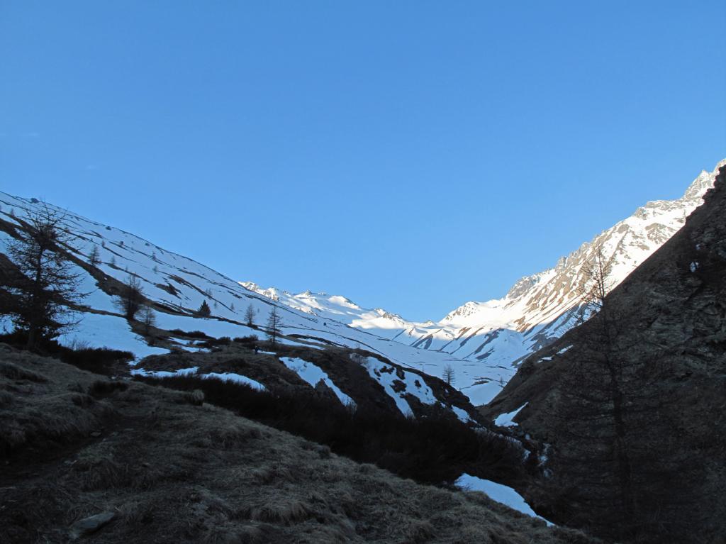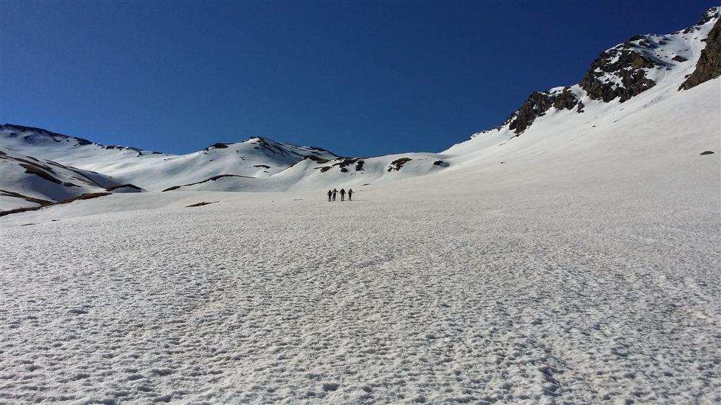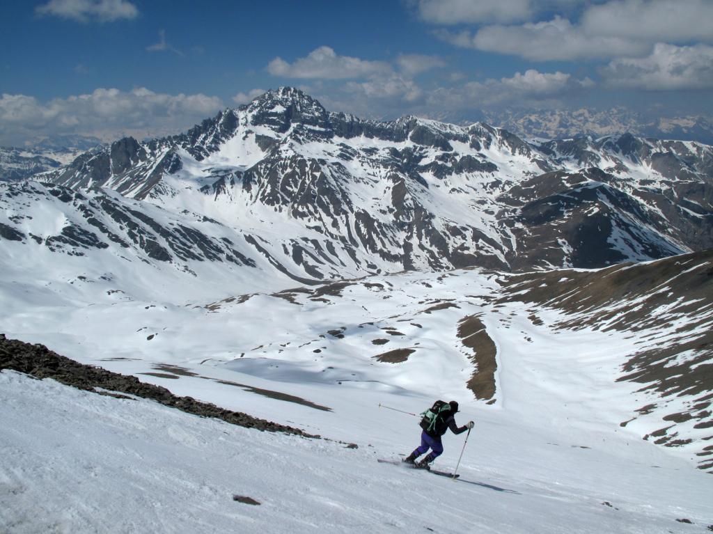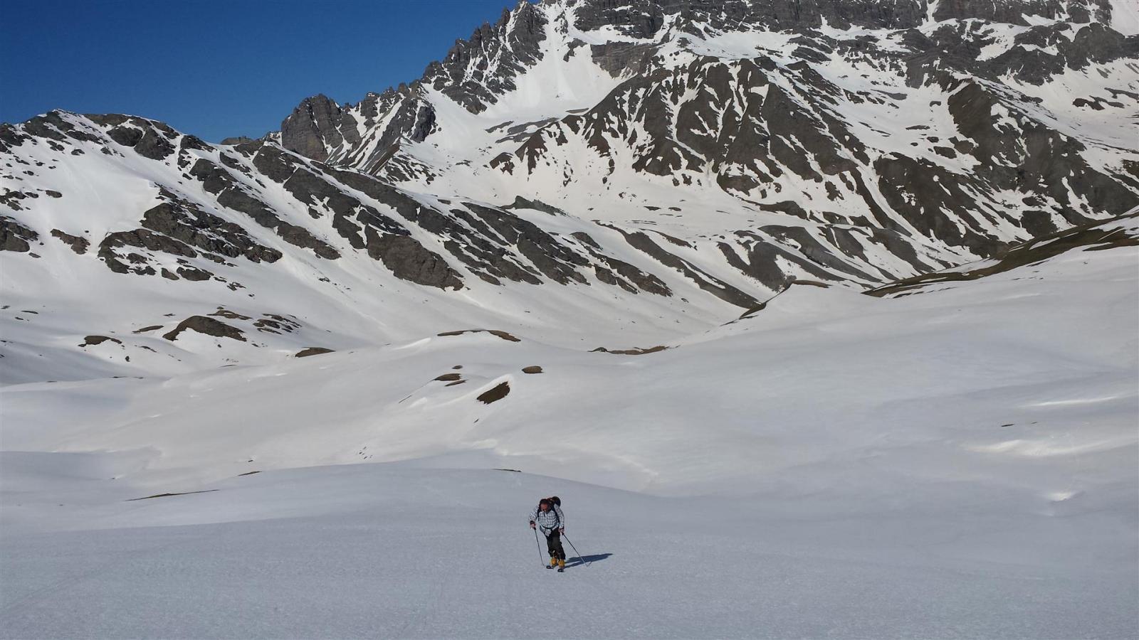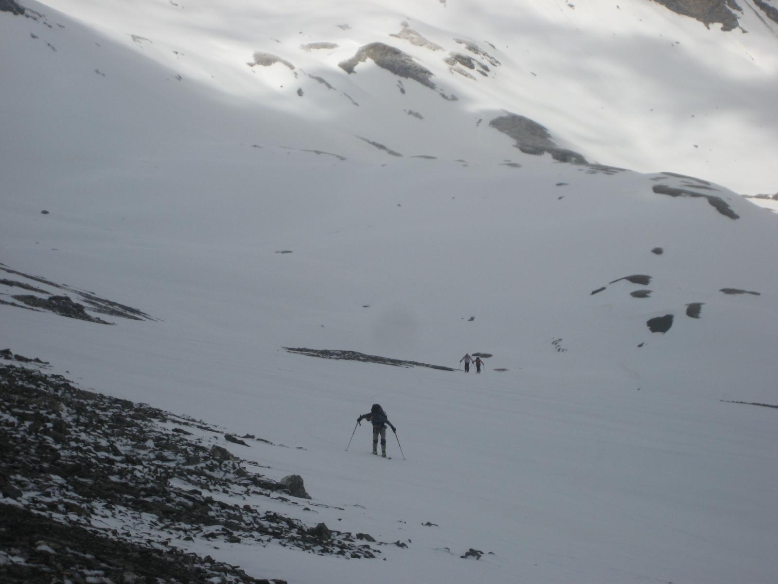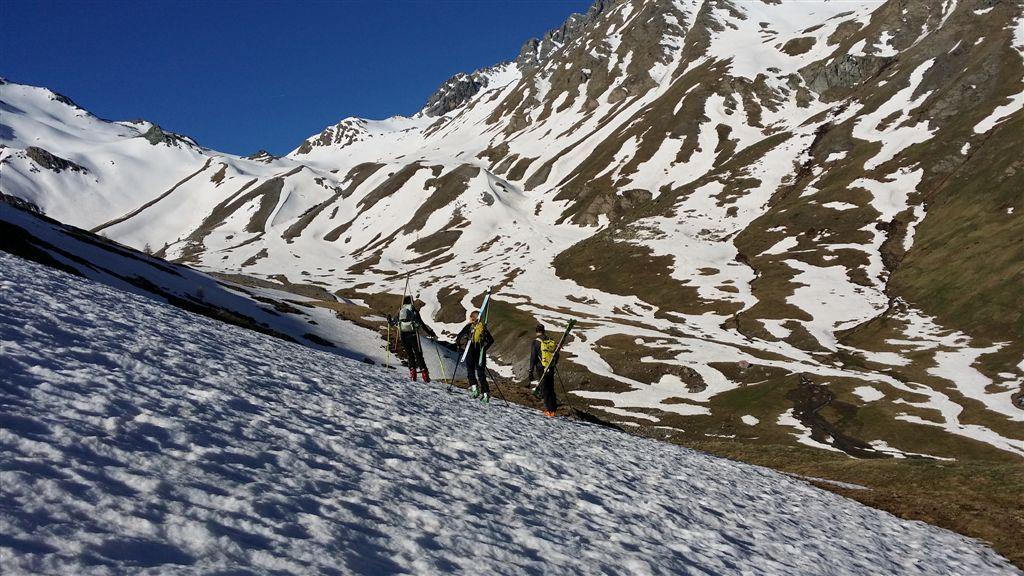 Ci si innalza per questo valloncello fin quando si può traversare a destra (sud) e si raggiunge la conca tra il Pic Lombard e il Petit Rochebrune.