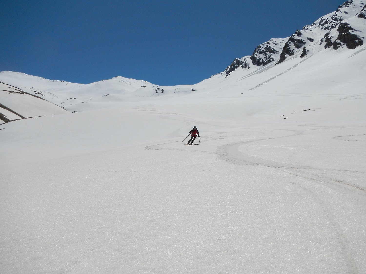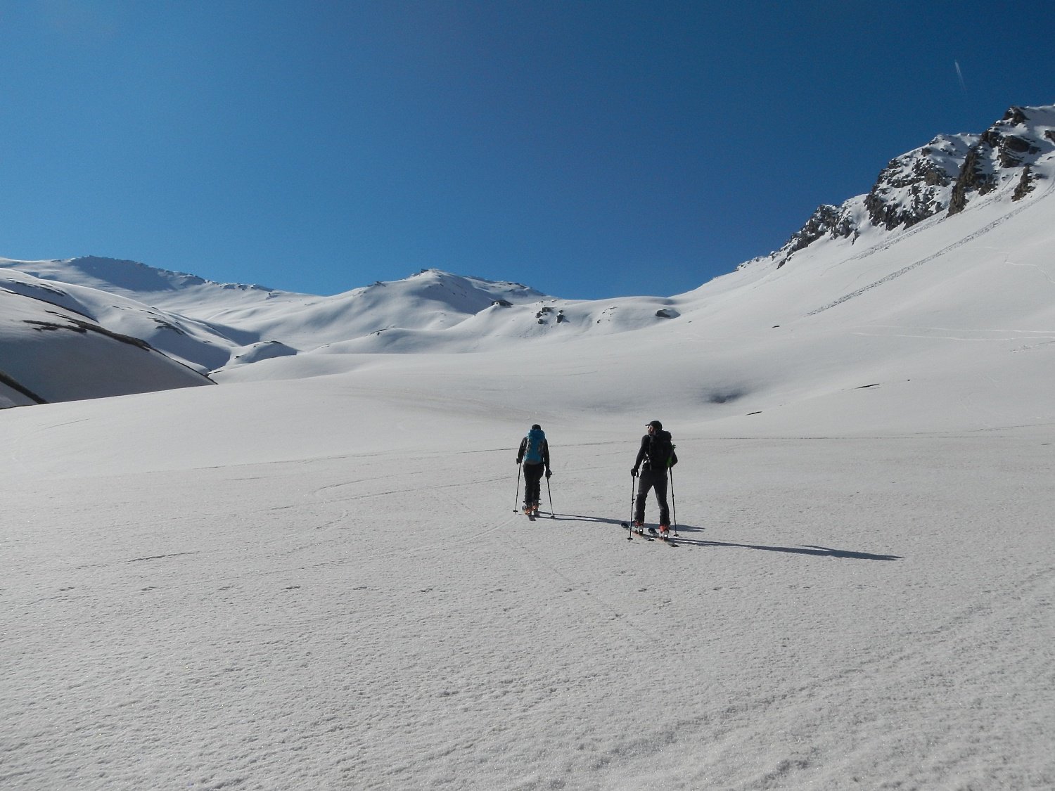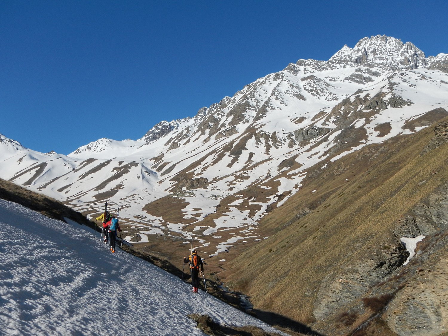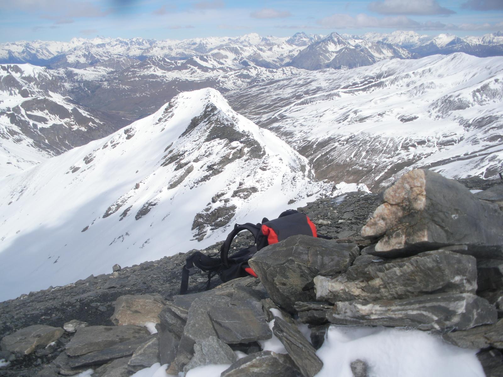 Ci si innalza per questo valloncello fin quando si può traversare a destra (sud) e si raggiunge la conca tra il Pic Lombard e il Petit Rochebrune.