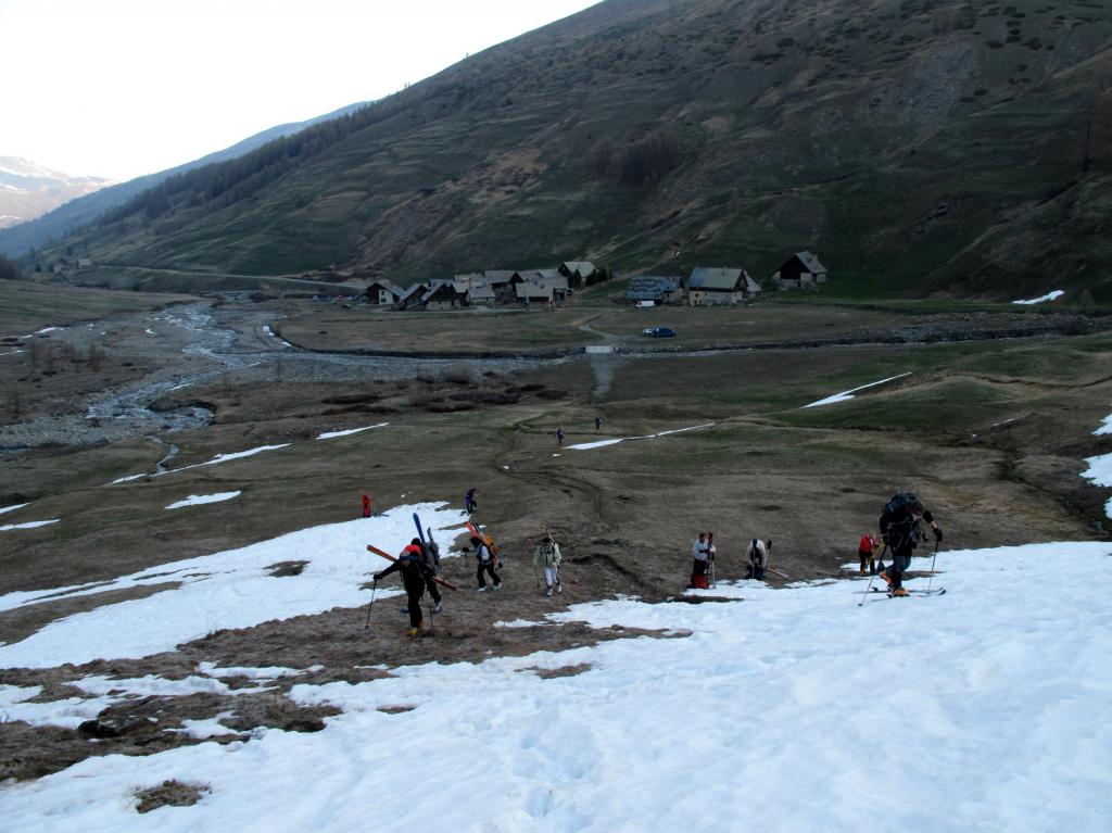 Da Les Fonts andare verso sud seguendo il vallone del Torrent de Ventou sulla sponda destra orografica. Dopo circa un’ora si traversa il torrente su un ponticello e si continua sul versante sinistro orografico dove solitamente la neve persiste più a lungo.