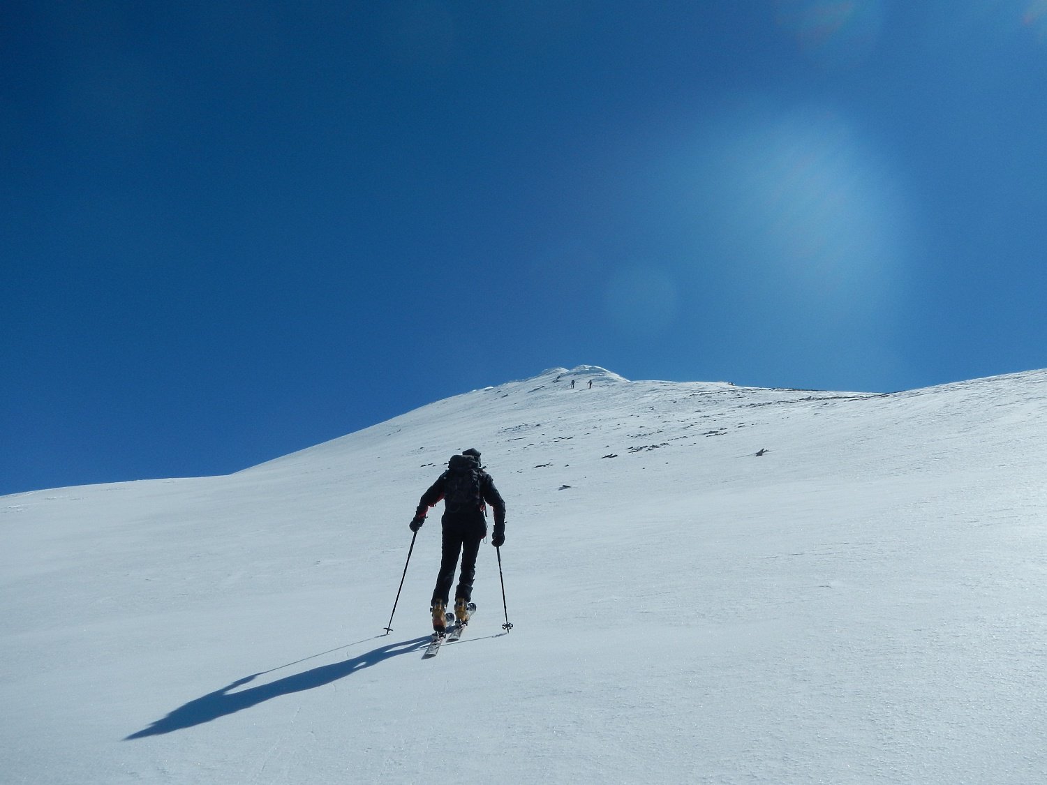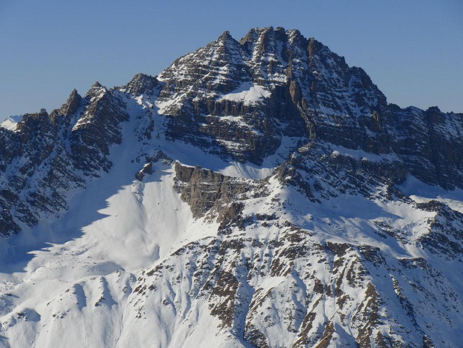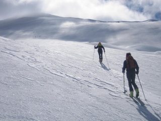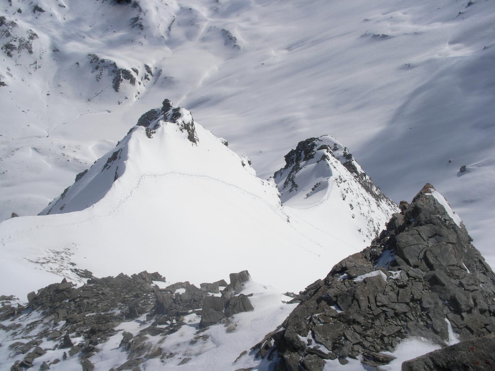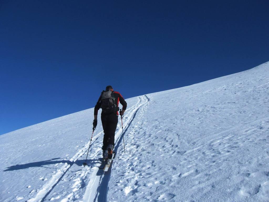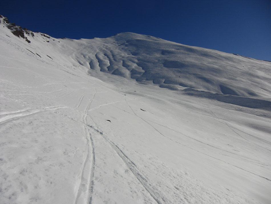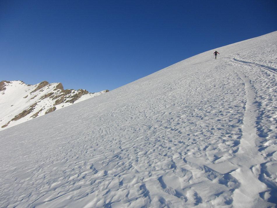 Di qua si punta direttamente in vetta. Questo è inoltre il percorso di discesa ed è consiglibile con neve sicura in quanto abbrevia decisamente il percorso.