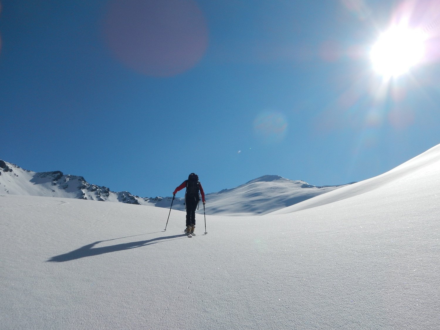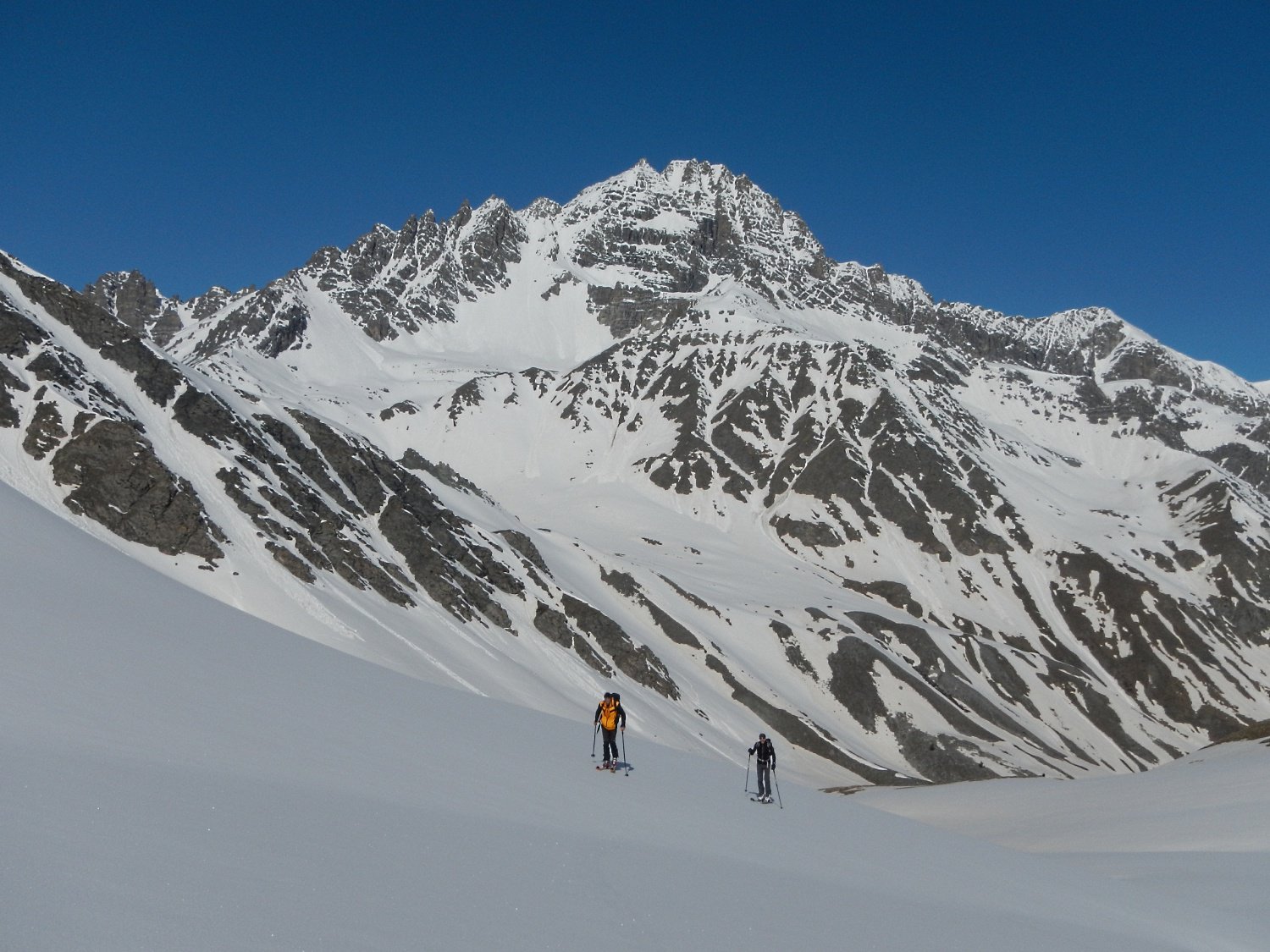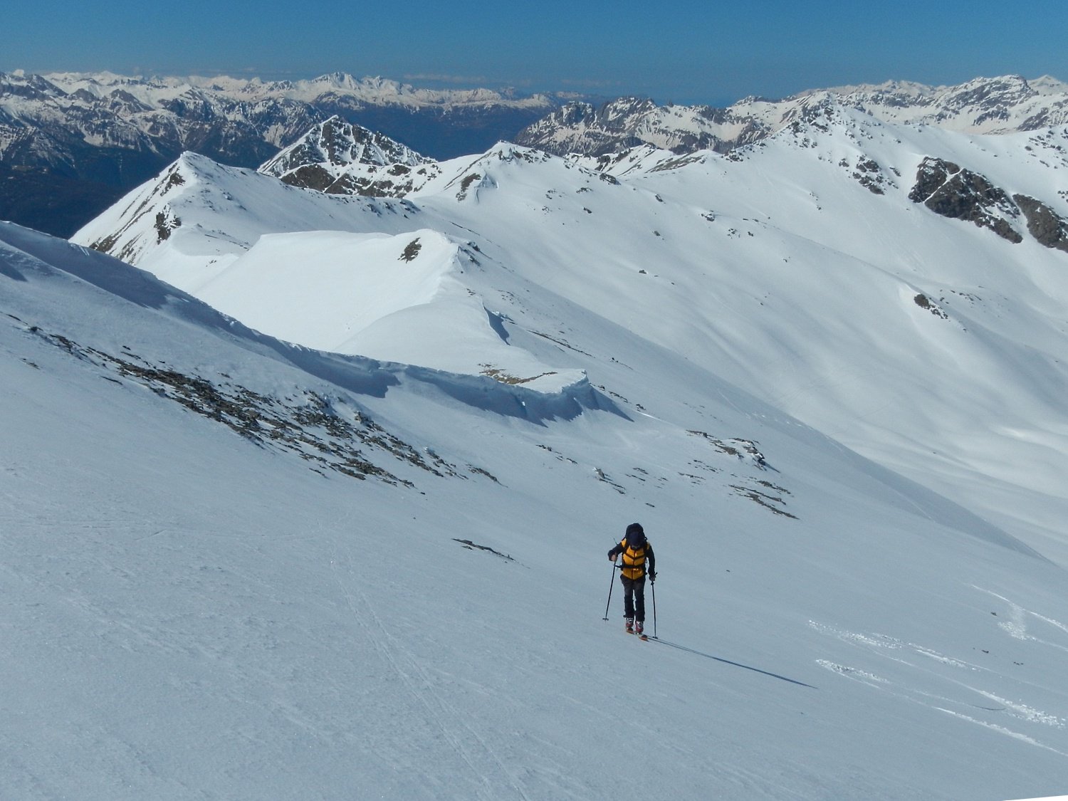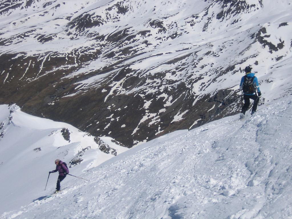 Di qua si punta direttamente in vetta. Questo è inoltre il percorso di discesa ed è consiglibile con neve sicura in quanto abbrevia decisamente il percorso.