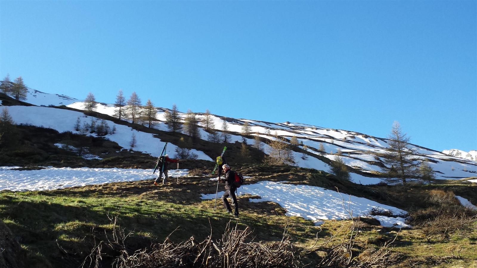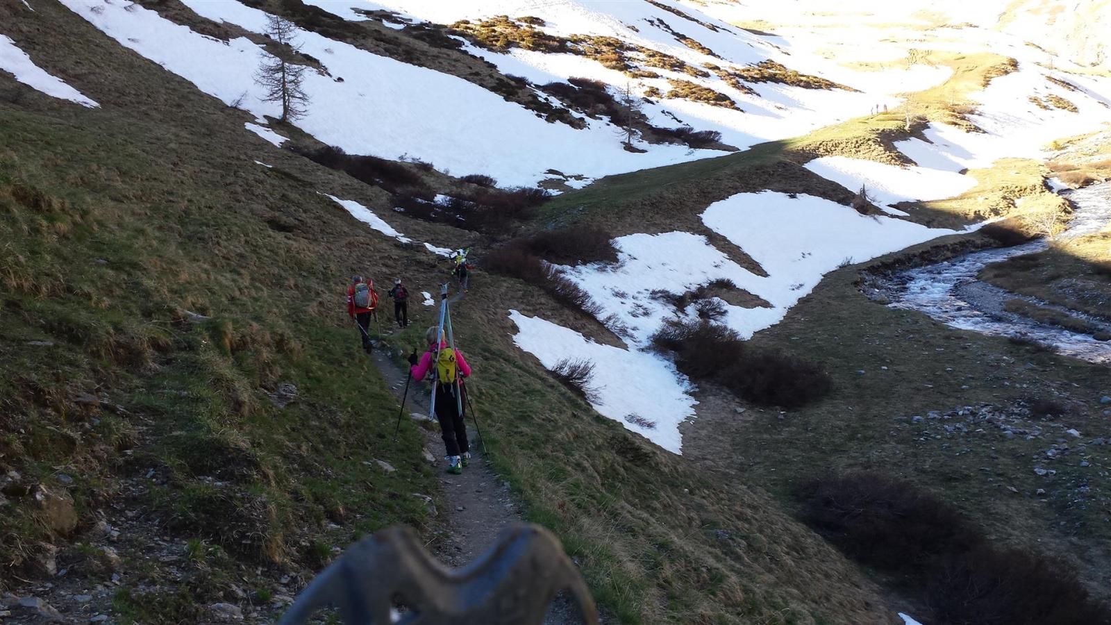 Possibile alternativa di salita: iniziando da subito ad innalzarsi lentamente, si arriva in un valloncello interno scendente direttamente dal Pic Lombard e dal Clot de Thures.