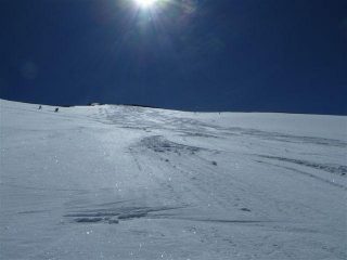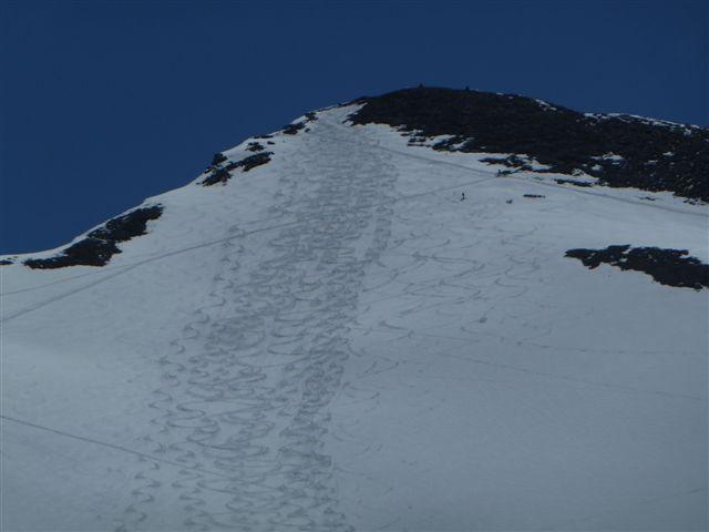15 minuti di portage (circa 100 mt di dislivello) poi neve continua (usati i coltelli). Abbiamo scelto di salire il vallone che va al Pic Lombard dove i pendii sono + ripidi ma la via è + diretta per poi scollinare a dx verso la conca che porta in vetta (preventivare al ritorno una risalita della conca per circa 50/70 mt di dislivello su erba).