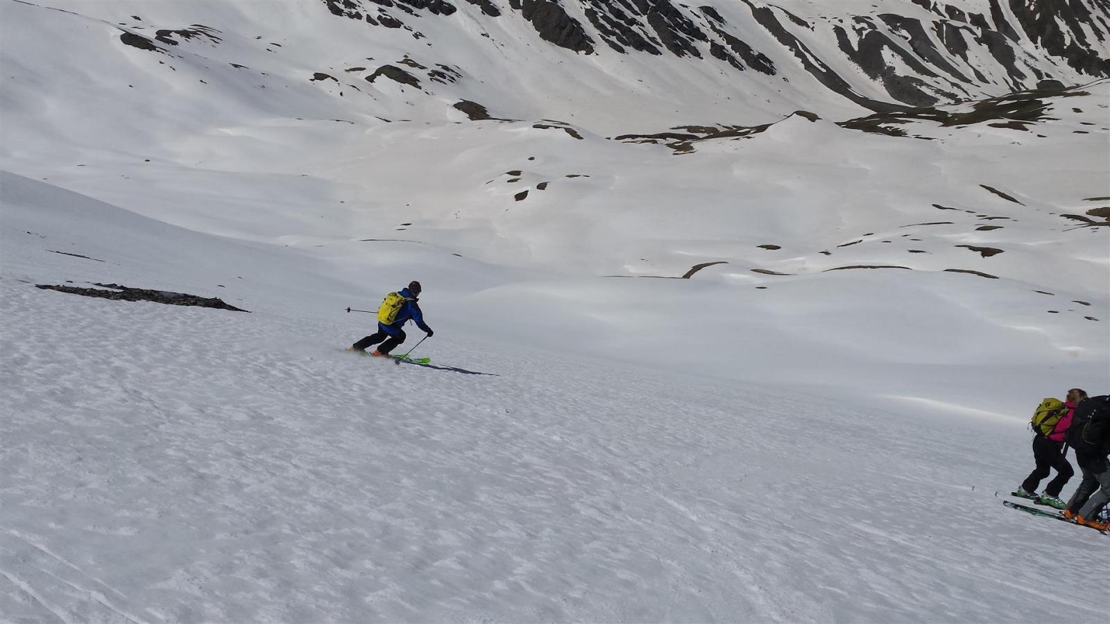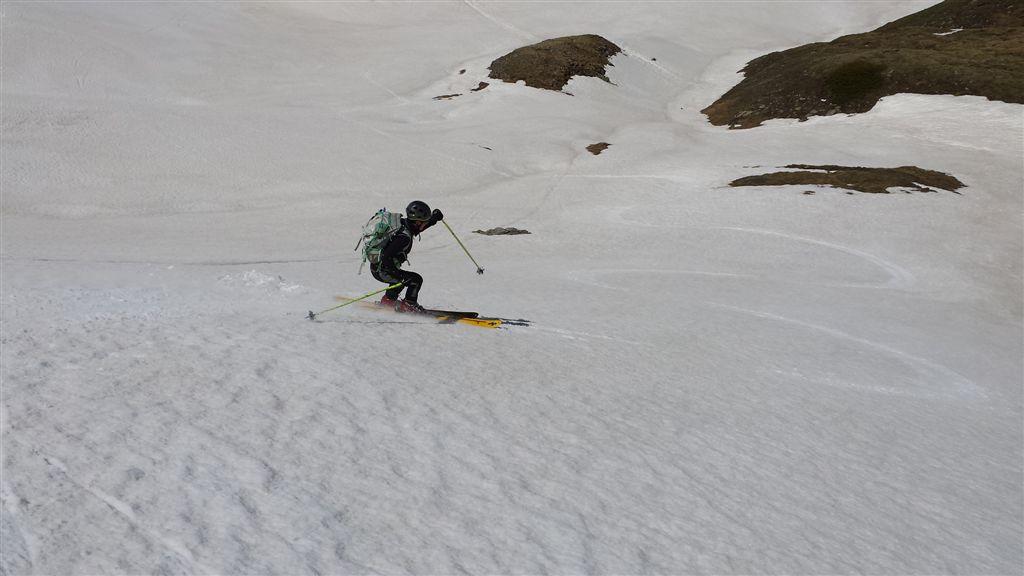Discesa sulla via di andata su neve dura ma con ottimo grip per i primi 150 m. poi ottima neve primaverile.