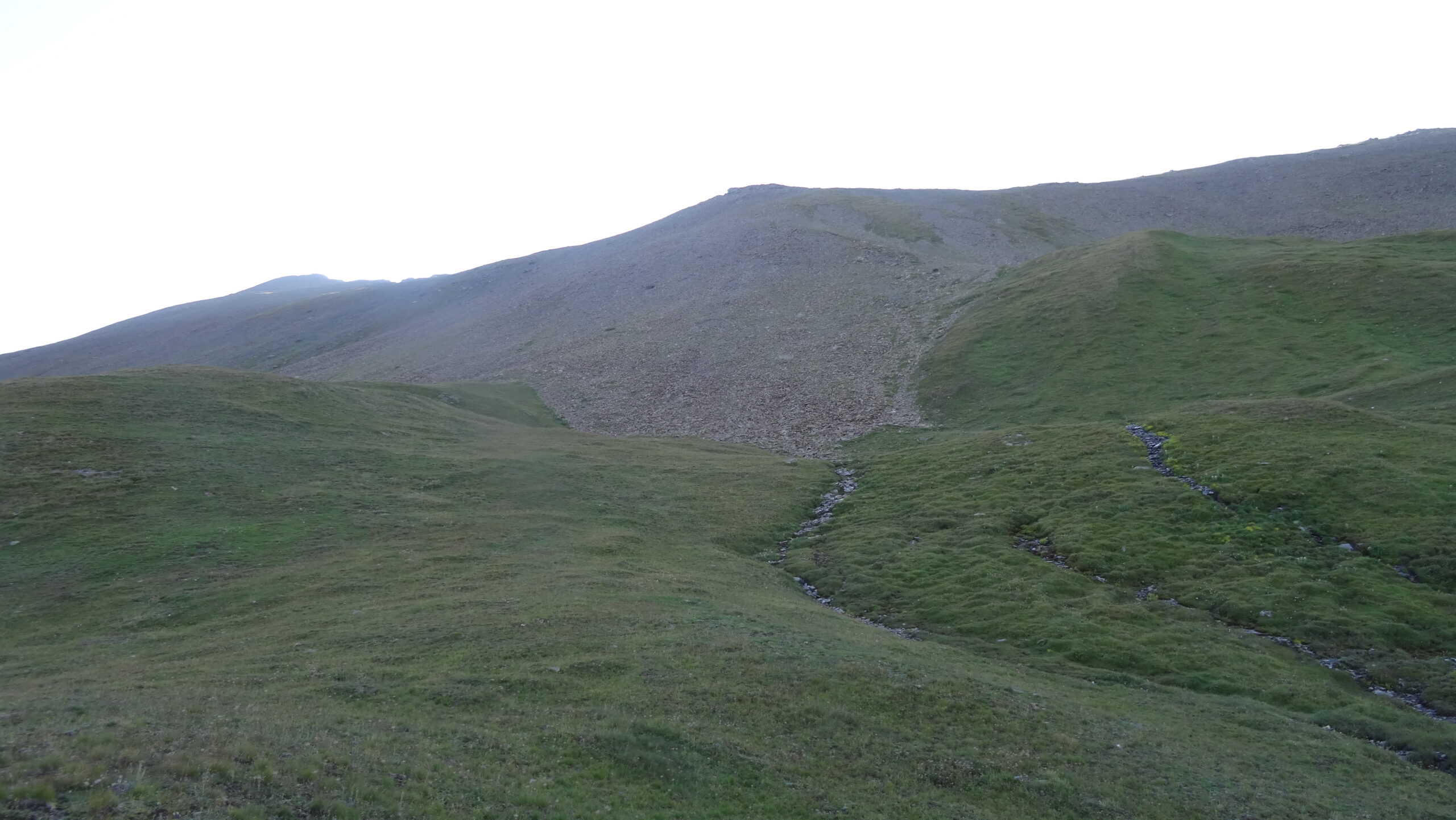 Ammetto che prima di scendere dagli sfasciumi del Petit ci ho pensato un po’, ma devo dire che sono talmente friabili che i piedi ci affondano e fanno naturale fermo al piede. Ho traversato come da relazione ed ho cominciato a seguire la cresta verso il colle ed il Pic du Malrif. C’è un sentiero spesso molto evidente che aiuta la traversata stando quasi sempre in vetta tranne che in una occasione dove si passa lato laghi scendendo di poco dalla cresta.