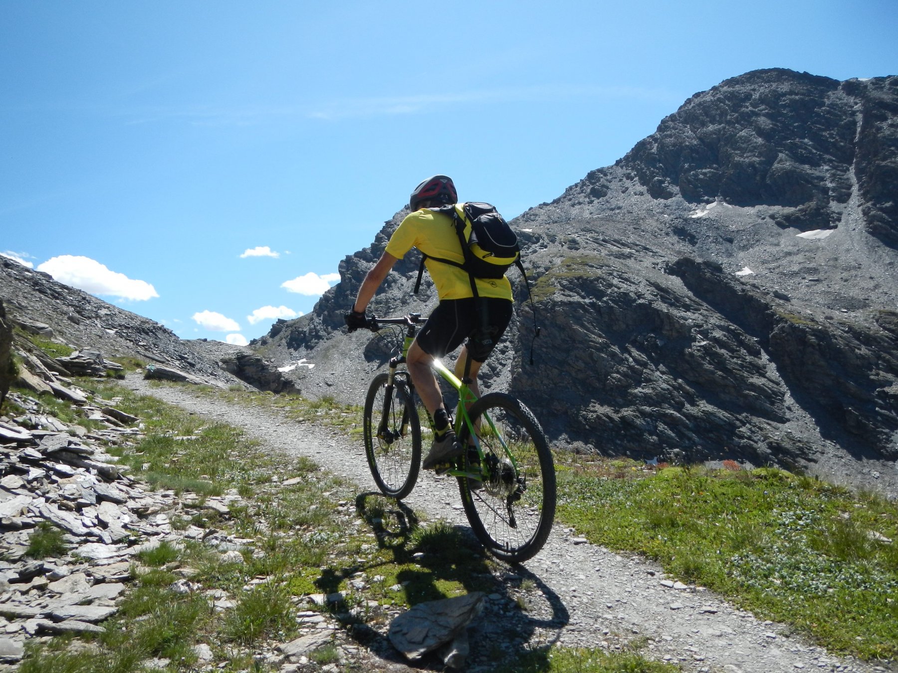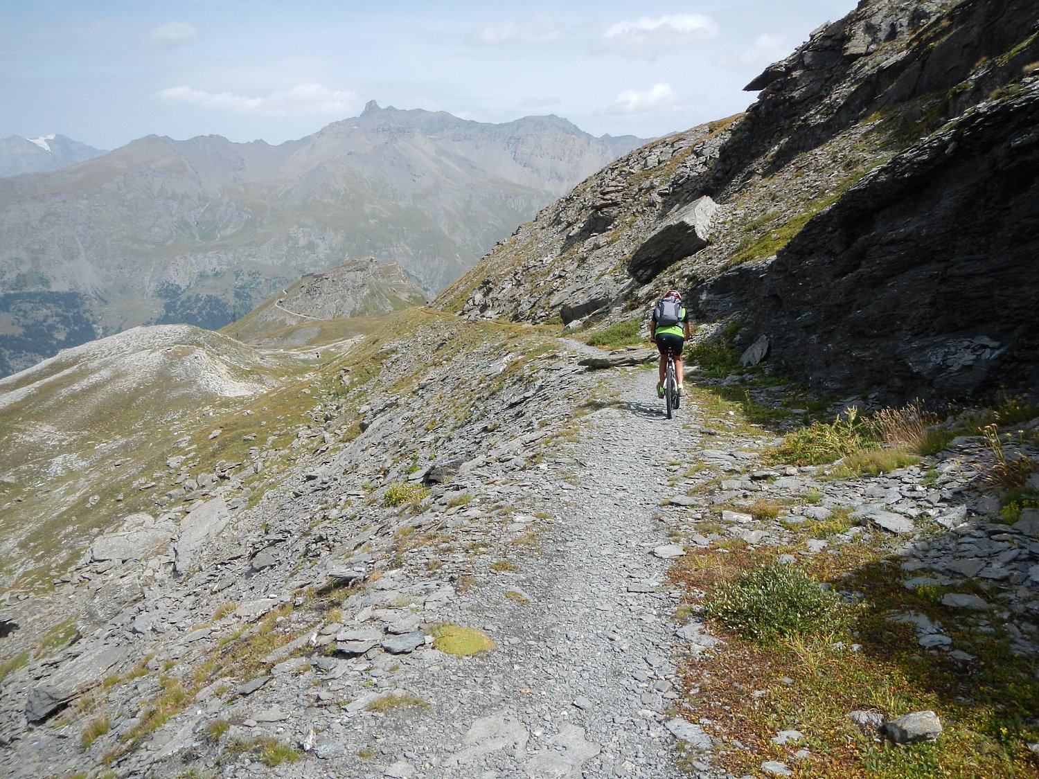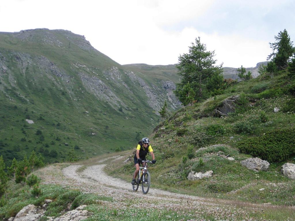 La prima parte del sentiero è ben pedalabile; poi è un susseguirsi di tratti con un buon fondo e ciclabili e tratti decisamente più impegnativi, per cui a volte si prosegue con la mtb a fianco o sulle spalle.