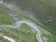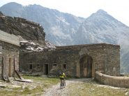 Lo sterrato porta alle casermette superiori, dove è ben visibile la struttura di una storica teleferica.