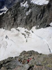 Se volete andare in cima percorrete la crestina finale nevosa e rifatela al contrario per riprendere le doppie.