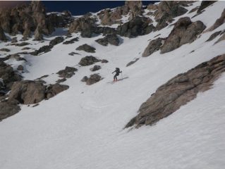 Incredibilmente per il periodo si arriva quasi alle Grange della Valle in macchina. La gita comincia molto bene perchè tra gli amici c’è Vilmer che rivedo dopo tanto tempo con piacere. Gita come sempre in ambiente spettacolare all’ombra del Niblè. Neve di tutti i tipi, e a detta degli amici sono riusciti a divertirsi comunque in discesa, mentre io e Matteo siamo scesi dal versante sud affrontando la spettacolare parete che fin da subito ci ha dato filo da torcere con una partenza ripidissima e un volo arrestatosi subito a causa della perdita dello sci. Questa discesa non era in programma e la neve era già un pò troppo molle, saremmo dovuti scendere prima. Comunque sia è stata una discesa bellissima e adrenalinica.