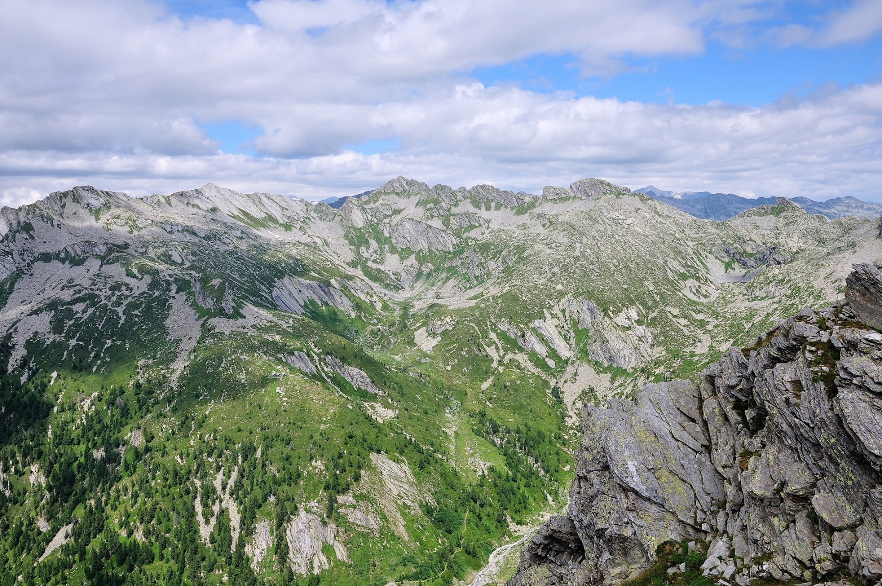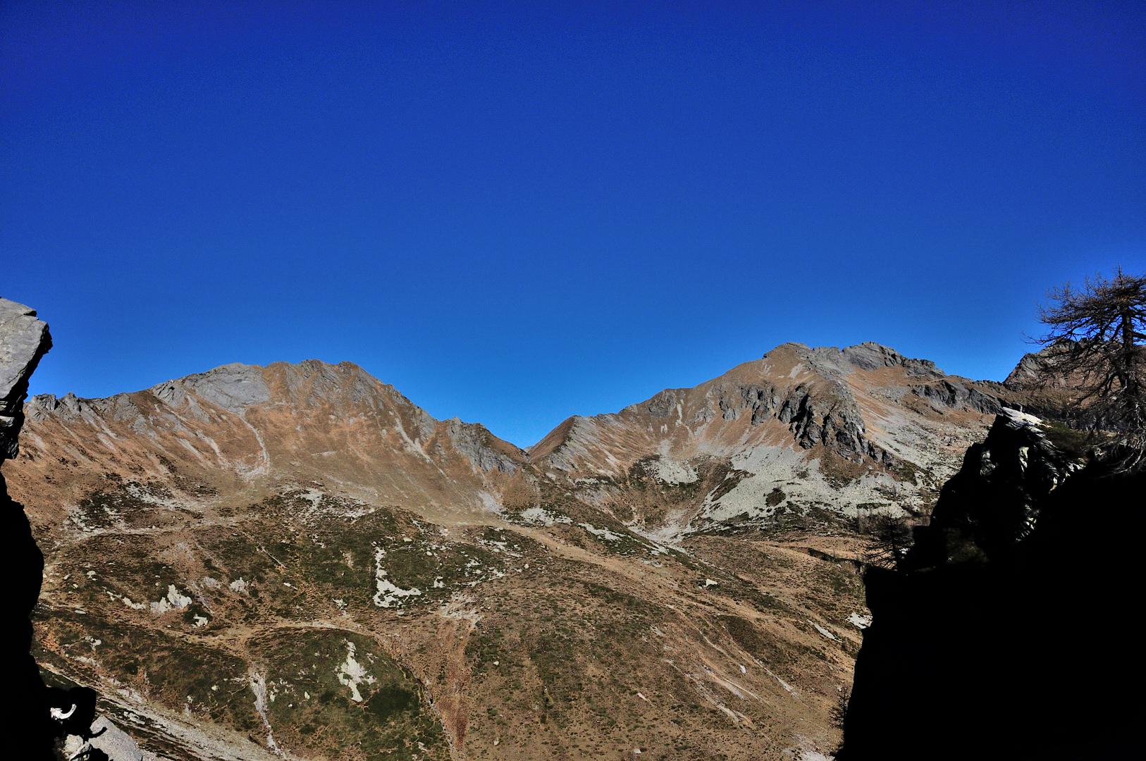 Si segue quindi il filo di cresta e, alle prime rocce, si può scegliere se passare in facile arrampicata sul versante del Lago Panelatte o percorrere le più facili tracce che aggirano le rocce verso sinistra, sul lato rivolto alla Pioda di Crana. Arrivati in vetta (m 2280), si scende dapprima in direzione della bocchetta della Pioda (Sud-Ovest) fino ad incontrare delle tracce che portano, in direzione Nord, verso la Forcola di Larecchio.