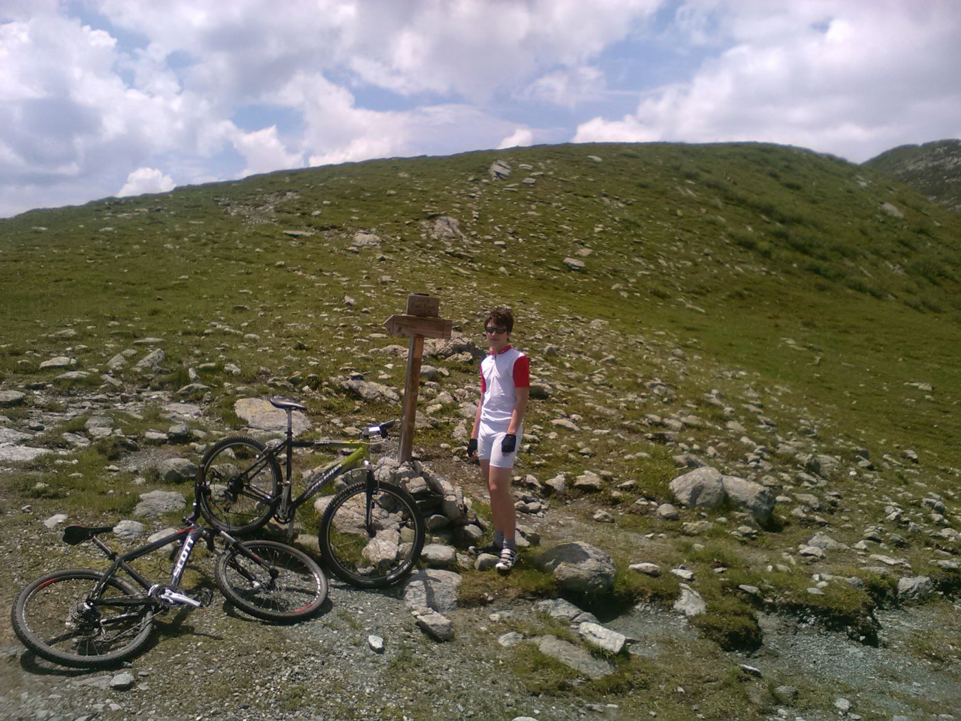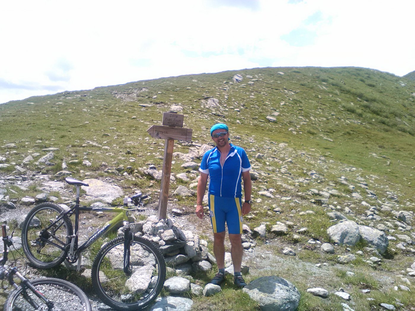 Partiti dai Tornetti. Caldo, assenza d’aria e umidità ( l’acqua della notte che evaporava dal terreno) nel primo tratto, meglio dal traverso in su. Sterrato in discrete condizioni e sempre ciclabile fino all’ ultimo tratto: negli ultimi 200 mt di dsl il fondo peggiora decisamente e si è costretti a spingere la bici nei tratti più ripidi.