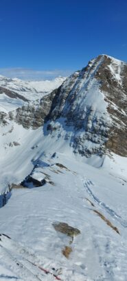 Abbassarsi sul versante Val Calanca di una decina di metri ed effettuare un traverso in direzione SSW per immettersi nella valletta finale. Percorrerla con giro in senso orario e percorrere in sci oa piedi gli ultimi metri fino alla cima(stazione anemometrica).
