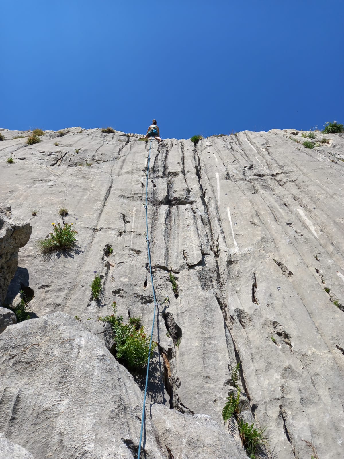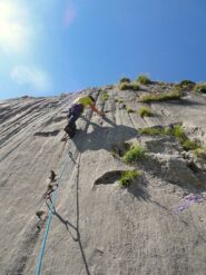 - 9) Solo amici 5c, 18m. Placca iniziale piccole prese poi cannelures.