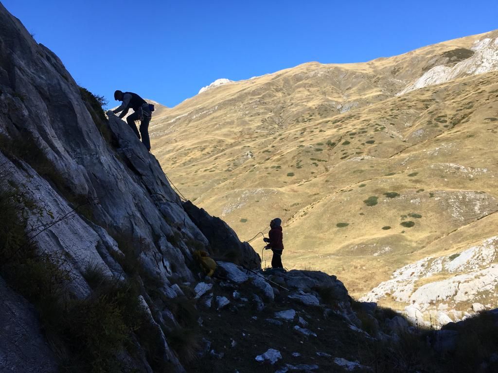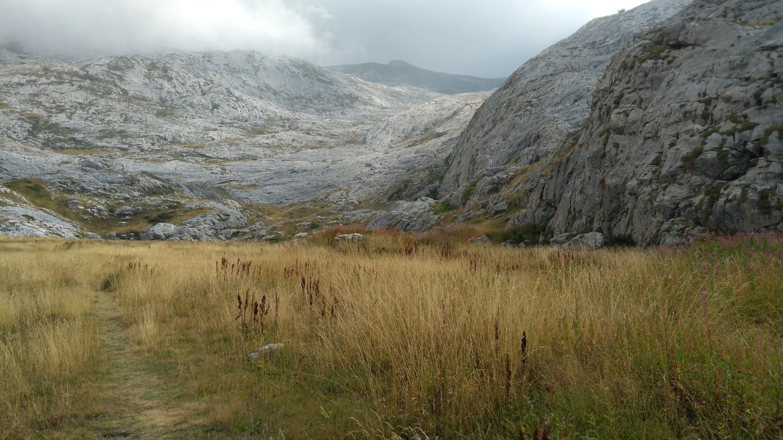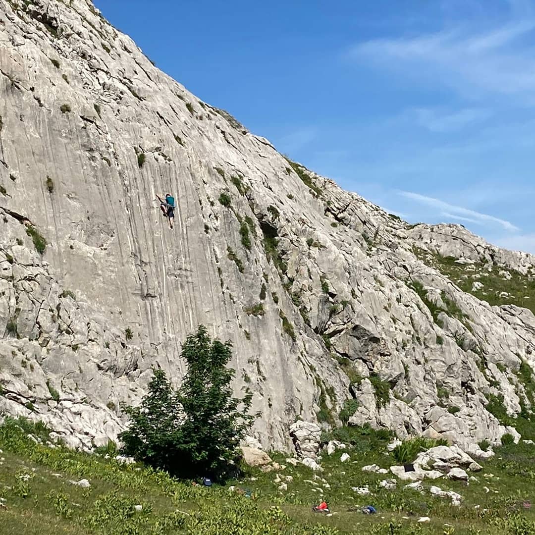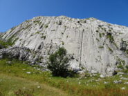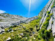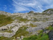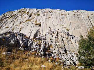 Di qui insinuarsi nell’evidente fondovalle erboso e ricco di calcarei “campi solcati” fino reperire sulla destra la barra rocciosa sulla quale appaiono evidenti gli spot e le linee di arrampicata (1h20’ dal parcheggio, poco dislivello prevalentemente su strada sterrata. E’ molto pratico l’accesso con E-Bike).
