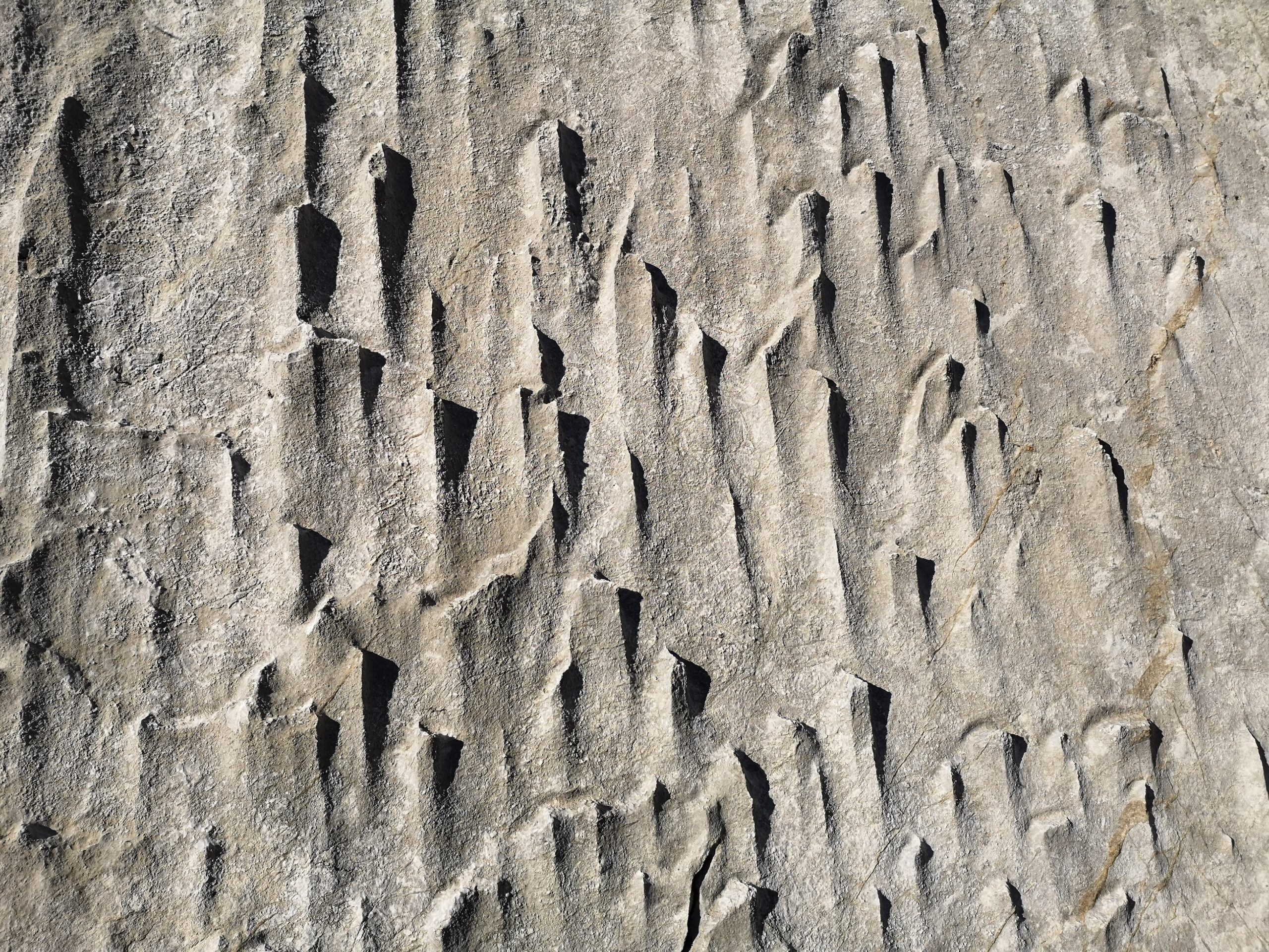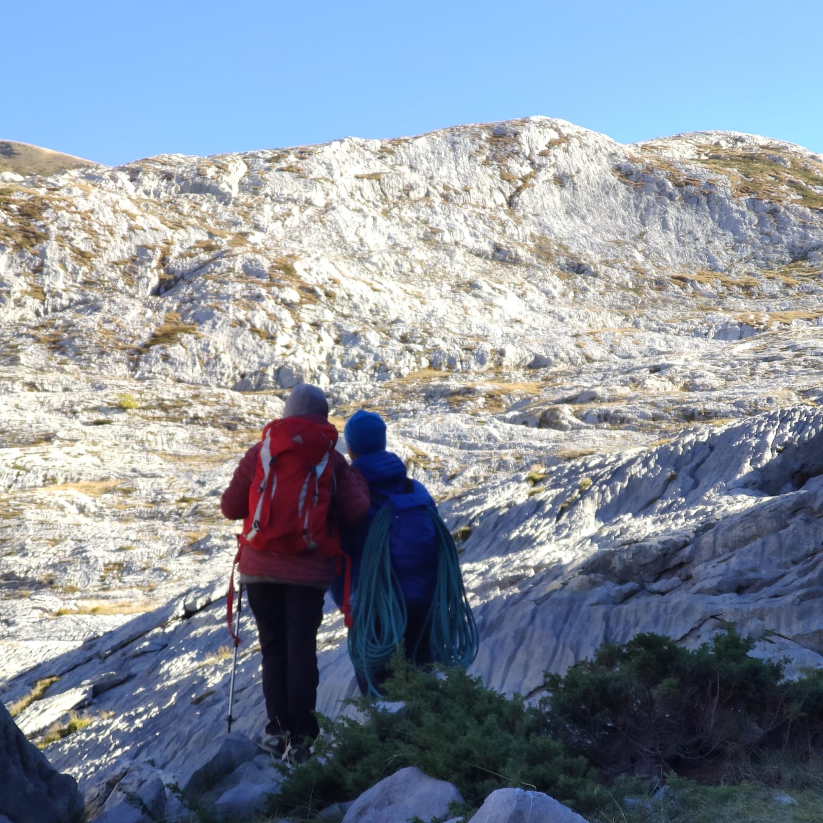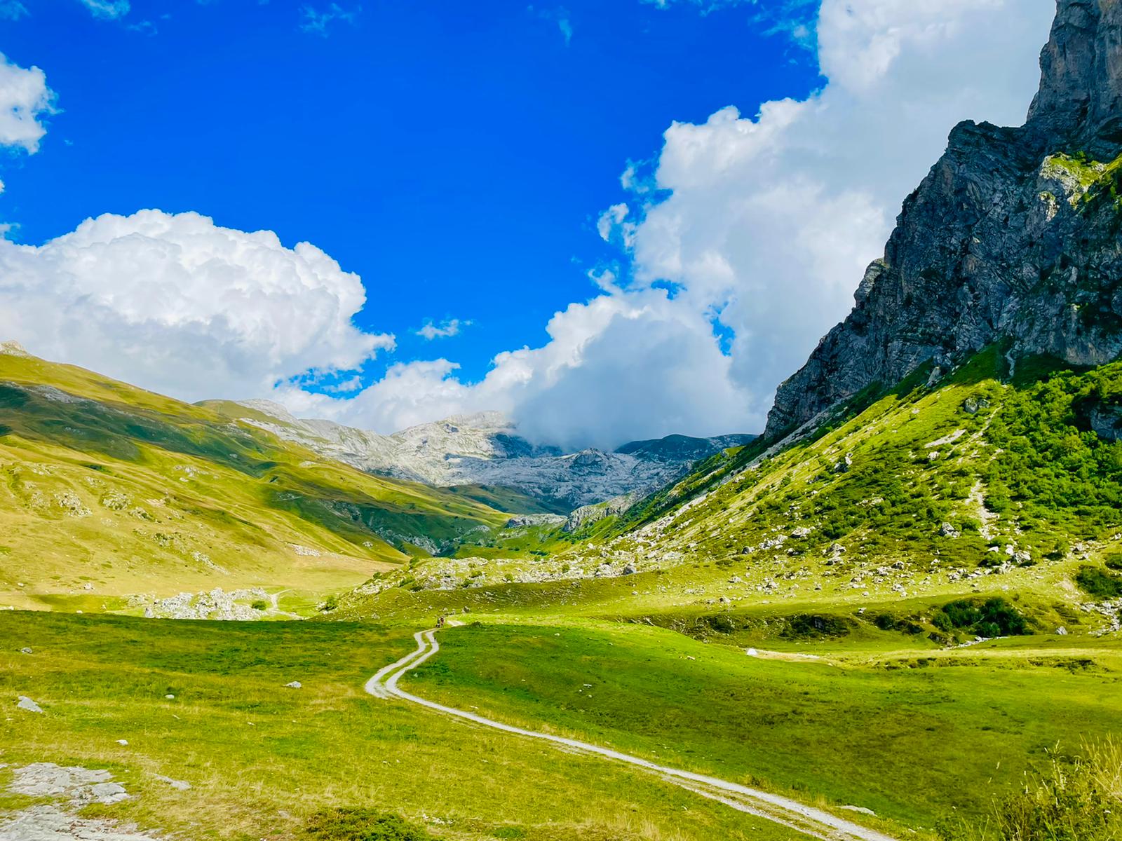 Di qui insinuarsi nell’evidente fondovalle erboso e ricco di calcarei “campi solcati” fino reperire sulla destra la barra rocciosa sulla quale appaiono evidenti gli spot e le linee di arrampicata (1h20’ dal parcheggio, poco dislivello prevalentemente su strada sterrata. E’ molto pratico l’accesso con E-Bike).