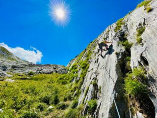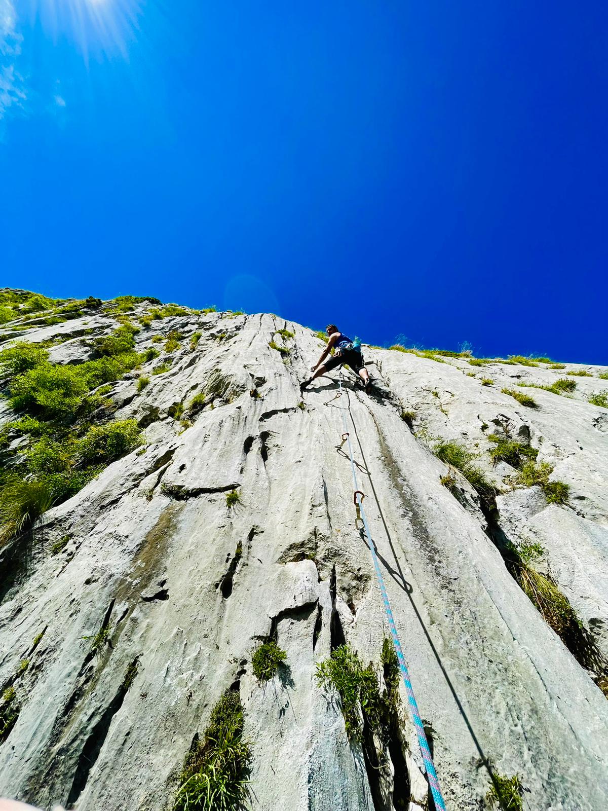 - 2) Sono un po’ birichino 5b, 20m. Placca compatta di ottima roccia.