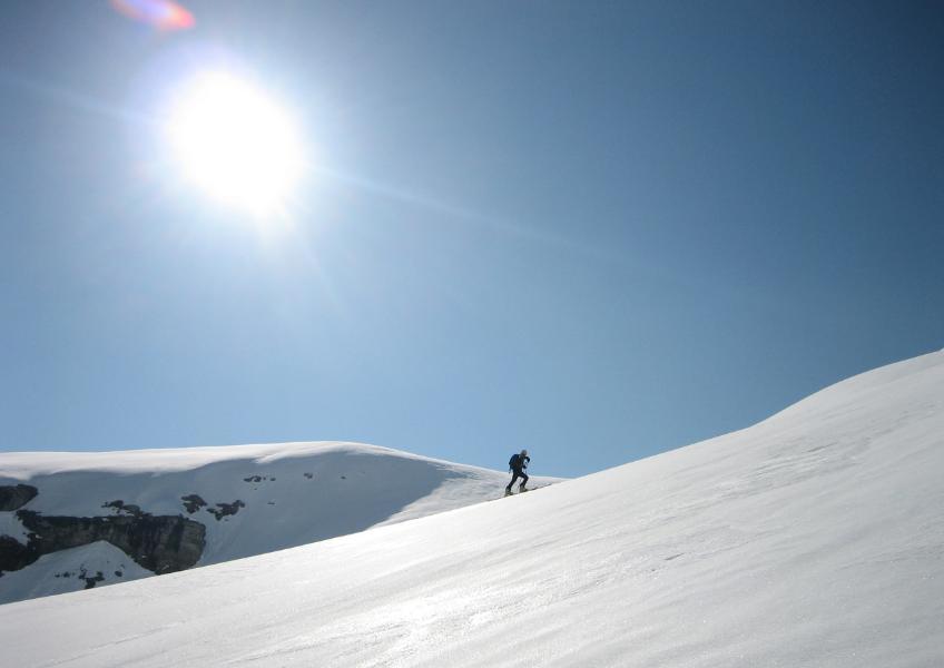 Successivamente si rimettono le pelli per risalire per circa 400 m in direzione della Porta del Villano (2663 m).