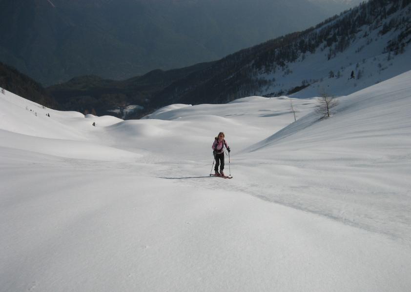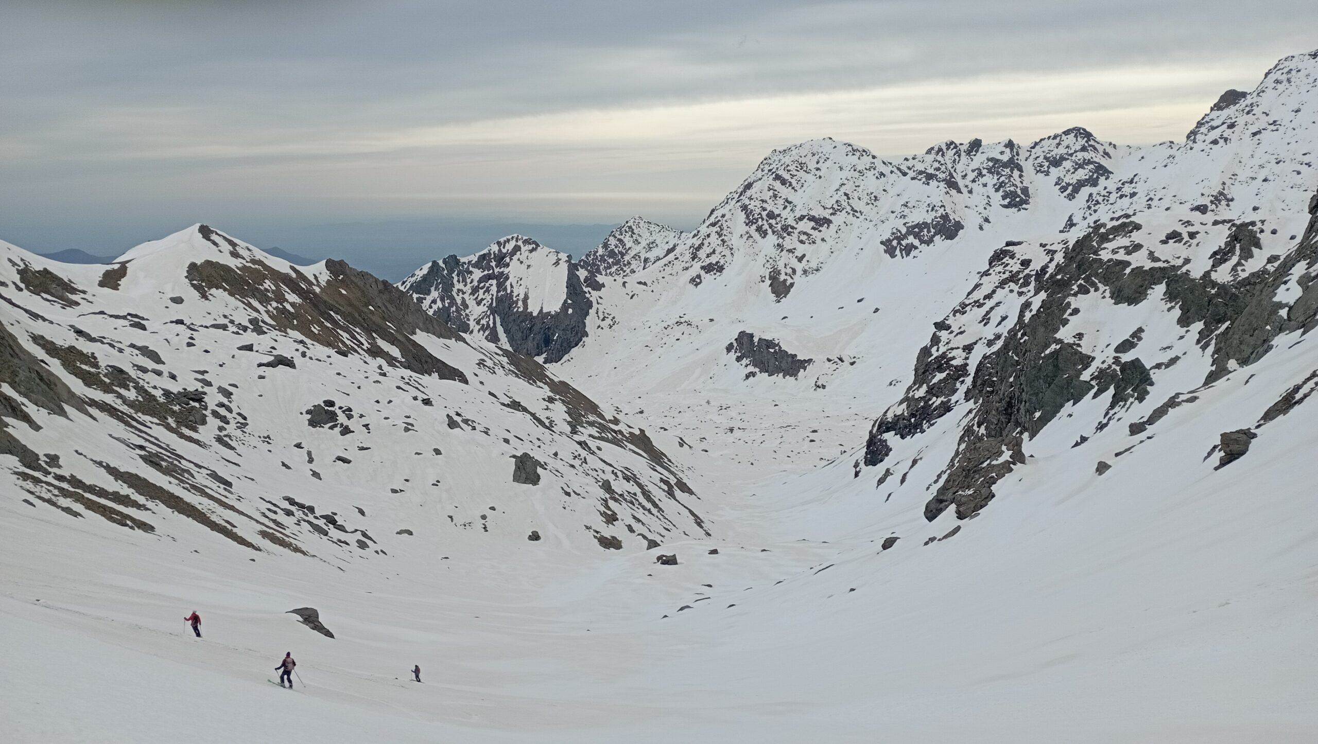 Una volta raggiunta la punta si possono togliere le pelli e cominciare la discesa verso il piano delle Cavalle passando per il colle della Malanotte, si perdono circa 600 m di dislivello.