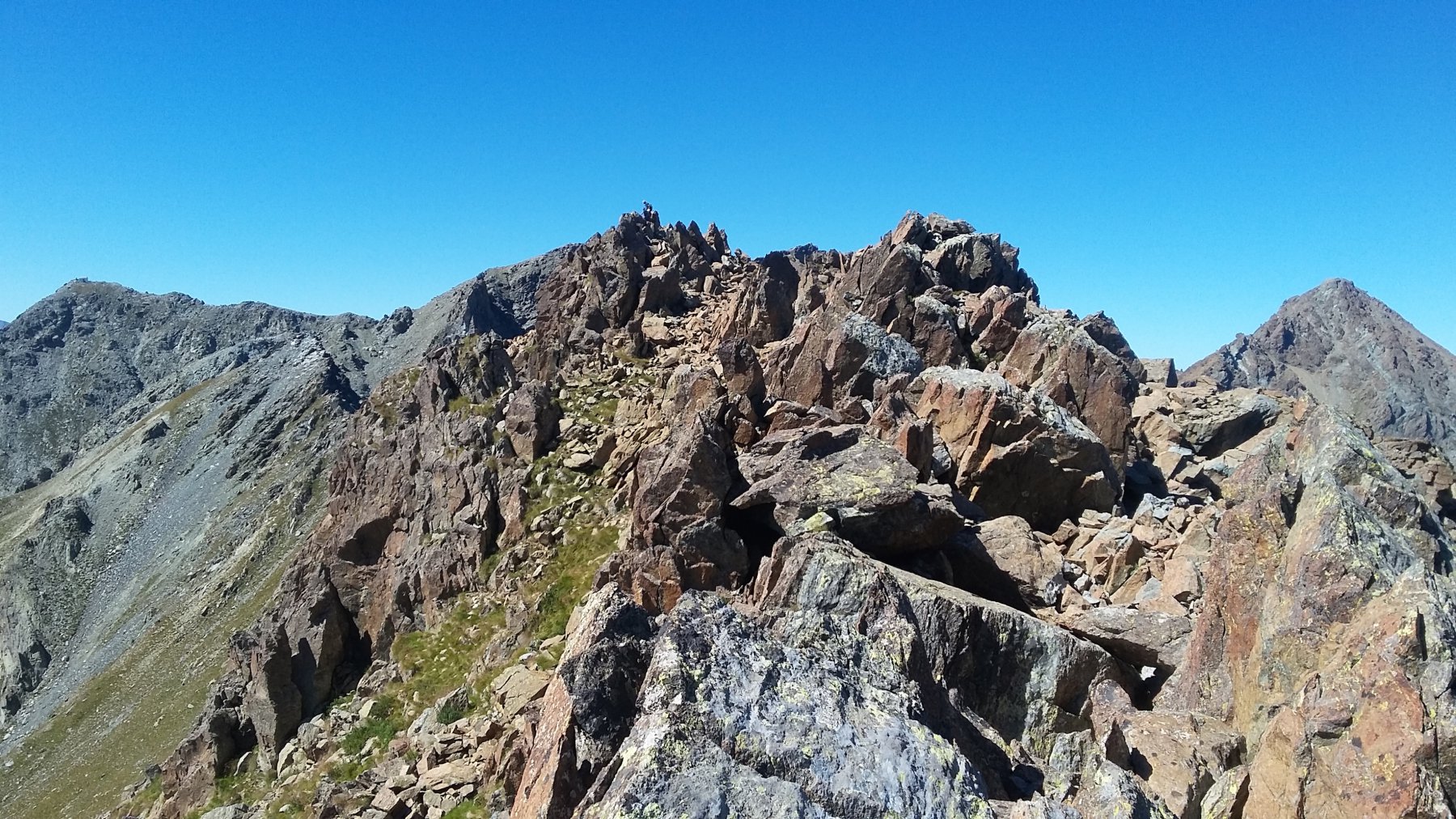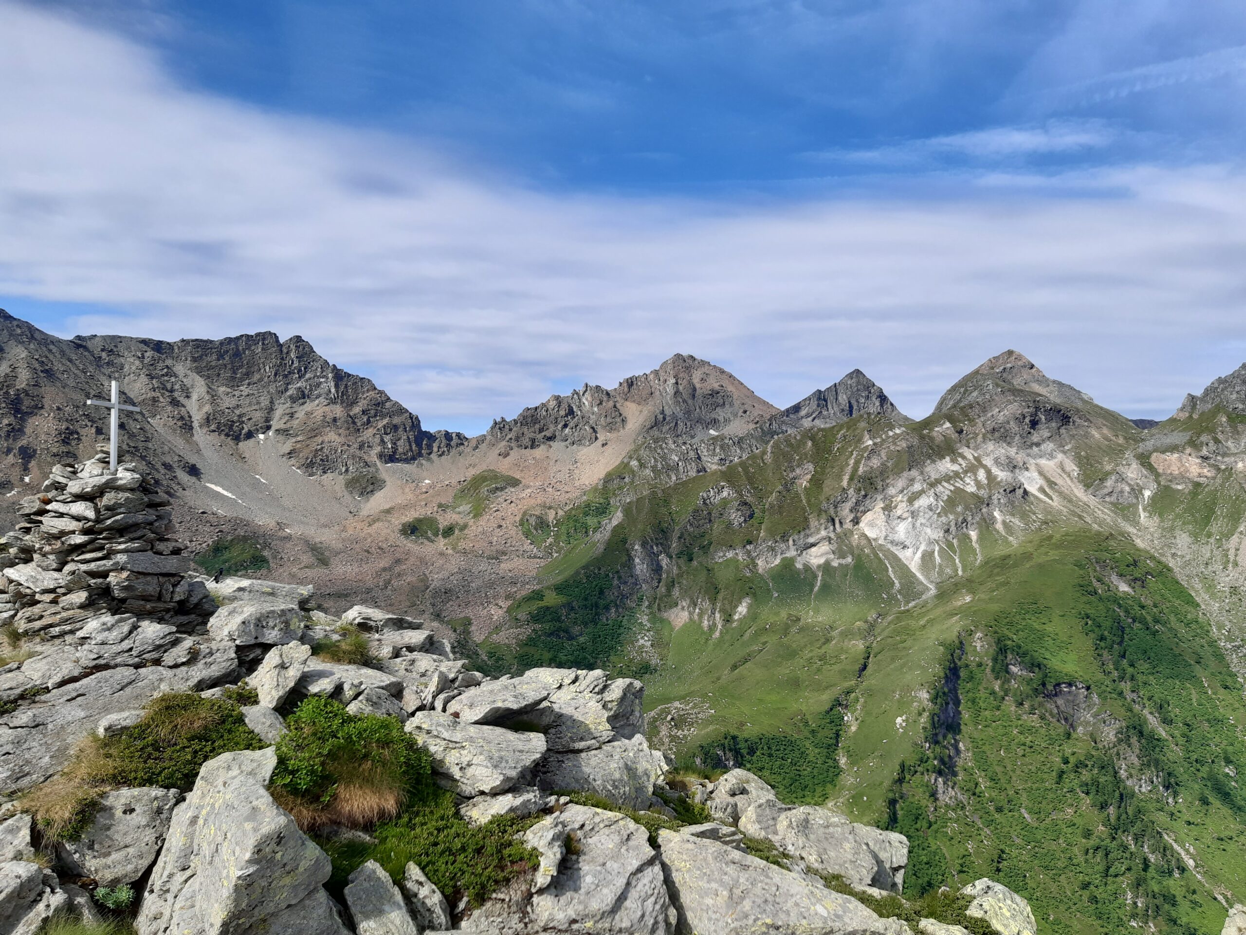 La croce di vetta non è situata sulla massima elevazione ma a est a circa 2608 (breve traversata in cresta).