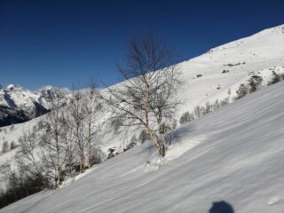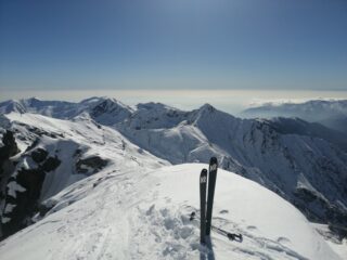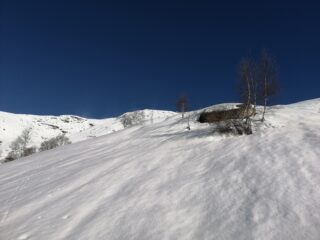 Partenza ore 7.20, in cima in 3 ore precise. Passato dal canale per accedere ai pendii superiori, a sinistra del santuario. Nella zona delle betulle, ho messo i coltelli per neve gelata. Ritrovata la traccia, molto ripida a tratti, arrivato facilmente in cima. Rigelo buono ma gran caldo e neve in rapido rinvenimento. Vento solo in cresta, mai forte. Neve portante e veloce sulla pala, un disastro nel canalone. Nel bosco sopravvivenza pura su marcione, con anche tratti a piedi, rapidi prati finali. Grandi panorami, ambiente selvaggio ma non estremo, consigliata per ravanatori. Al netto dei membri di un corso, non molta gente in giro.