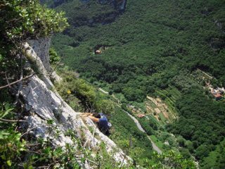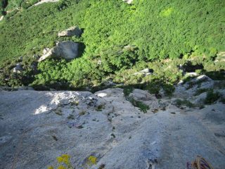 Bellissima giornata col mio amore, da soli sulla via. A due passi i nostri amici su Grimonett, usciti dalla parete quasi nello stesso momento. Per fortuna abbiamo scelto di venire a Finale, complimenti alle previsioni!!!