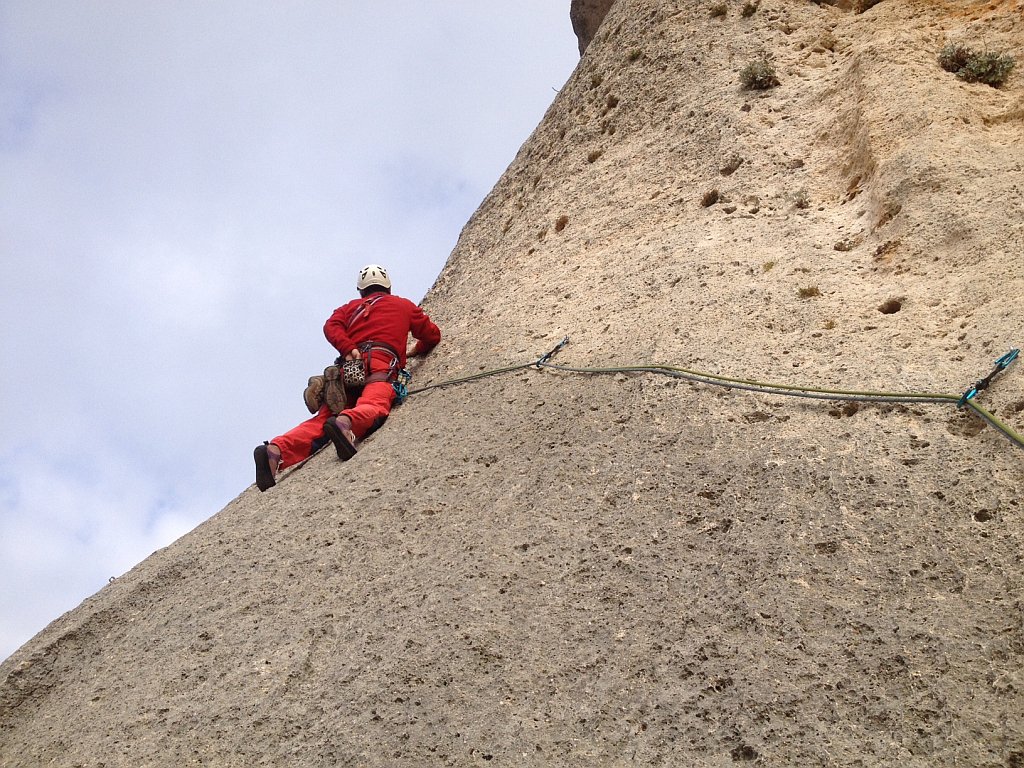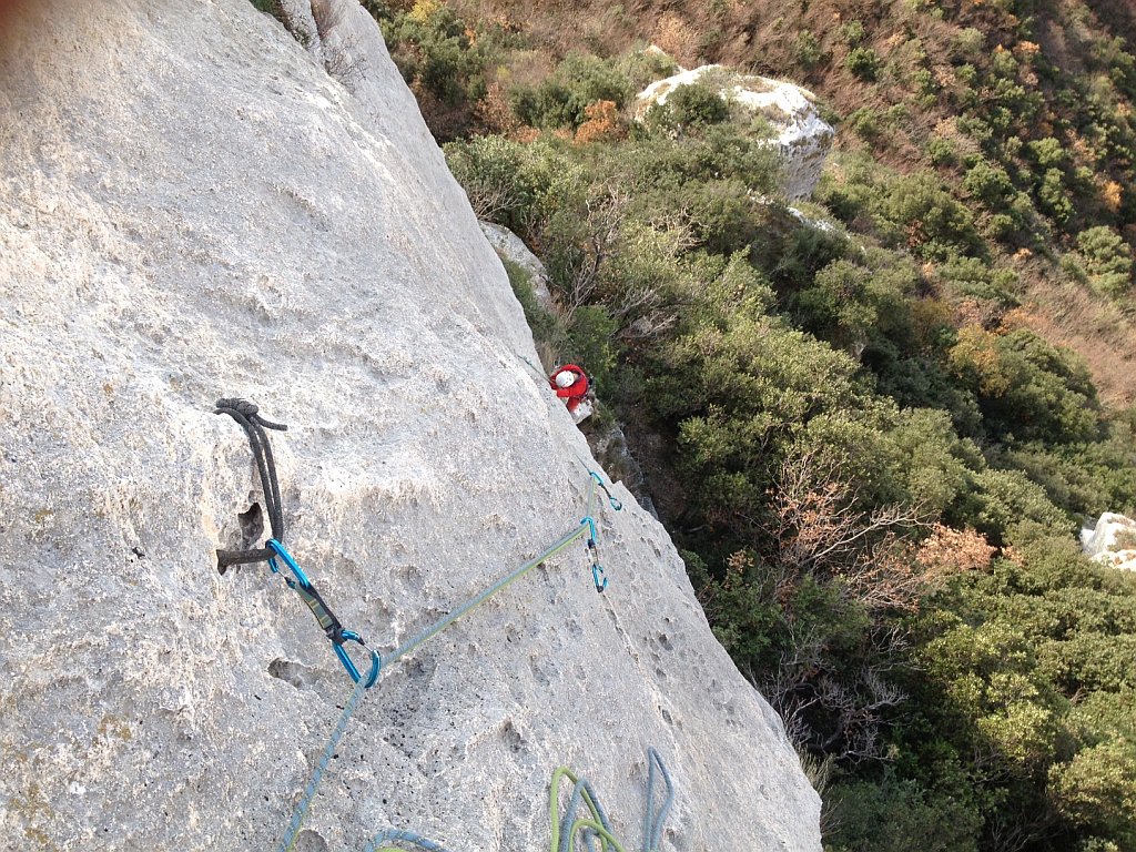 Attrezzata a vecchi spit, fittoni e chiodi. Soste generalmente buone (alcune da raccordare).