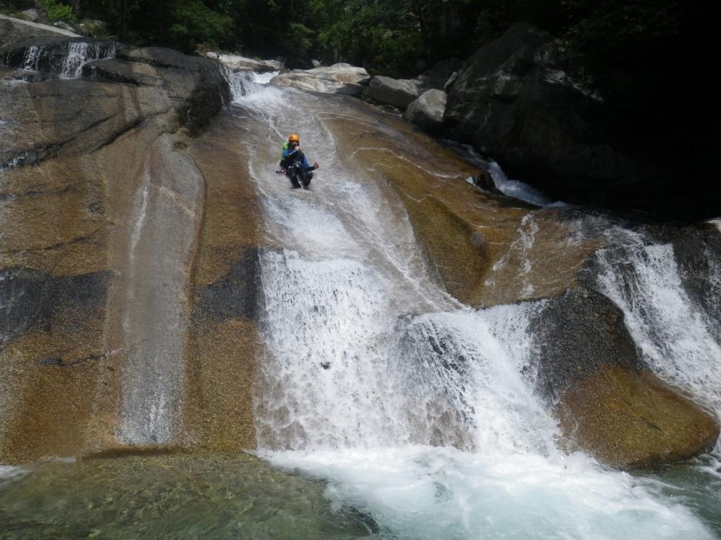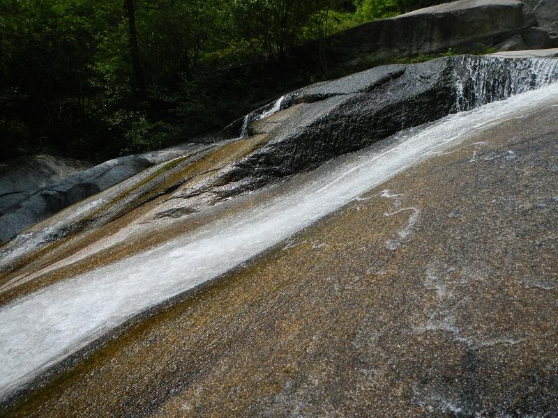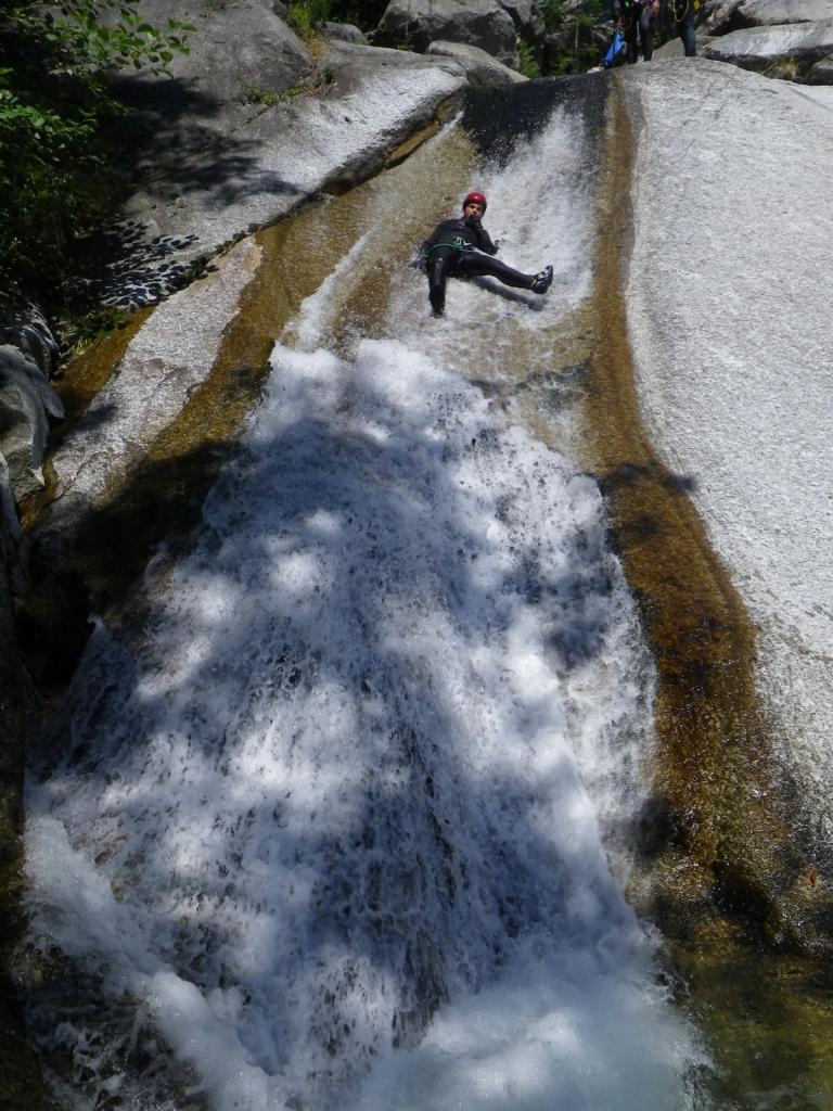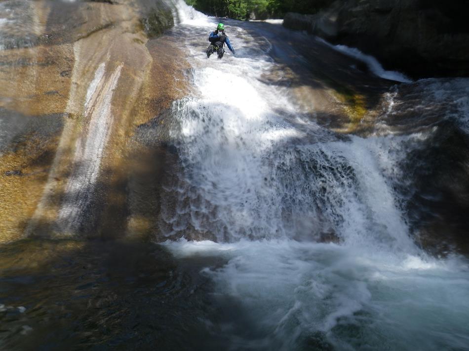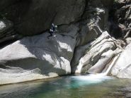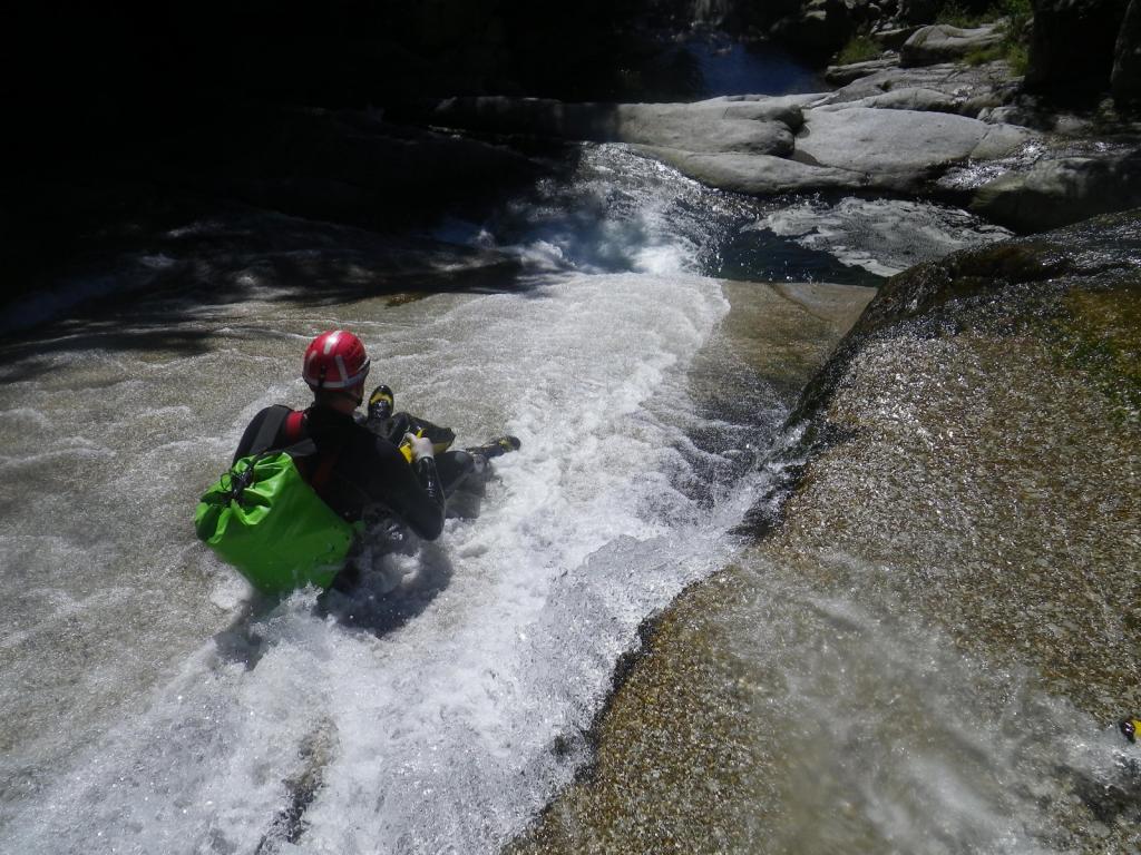 Tenersi poi sul versante dx orografico per evitare placconata estesa molto scivolosa che portano alla parte più ludica e divertente del Canyon e danno origine a tre scivoli tabogabili.