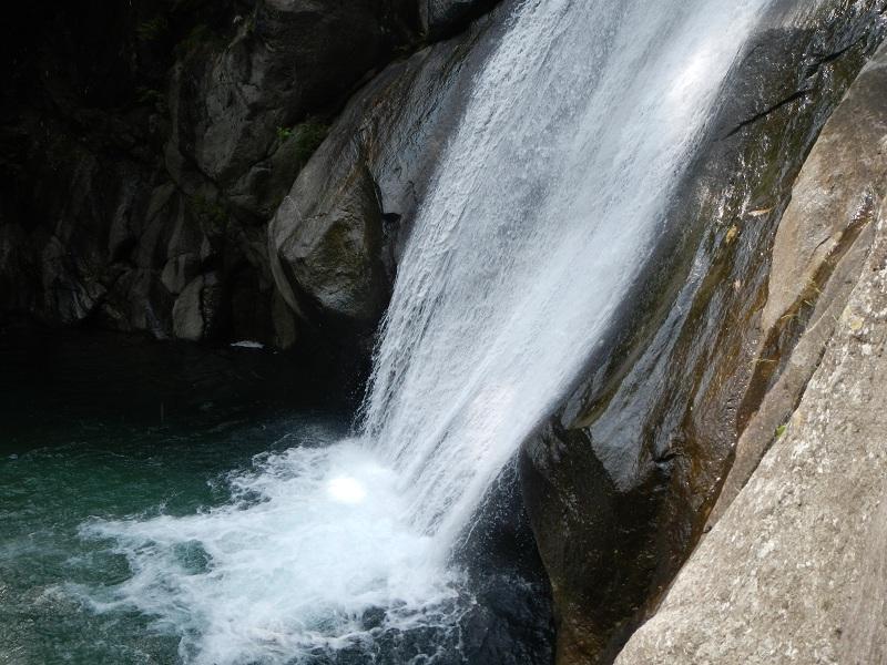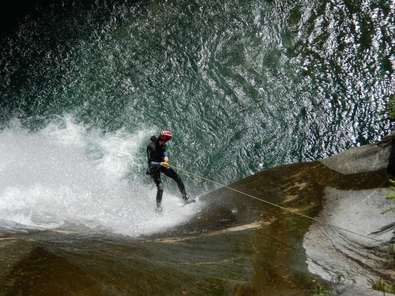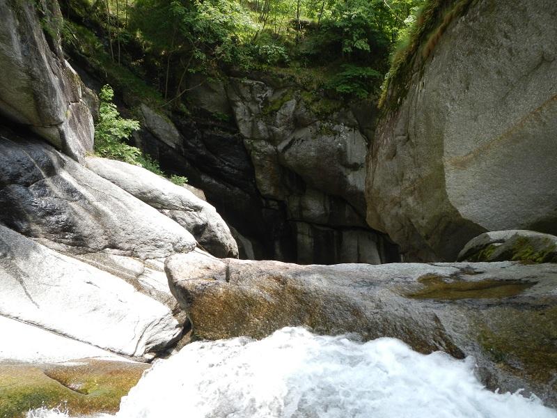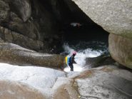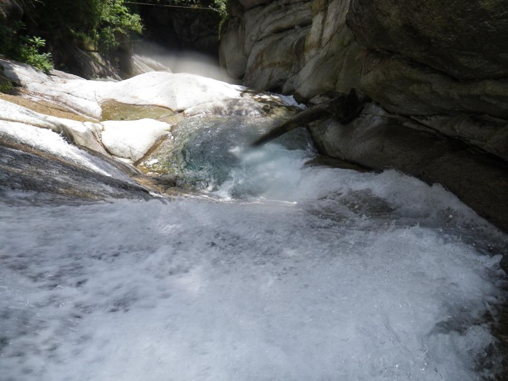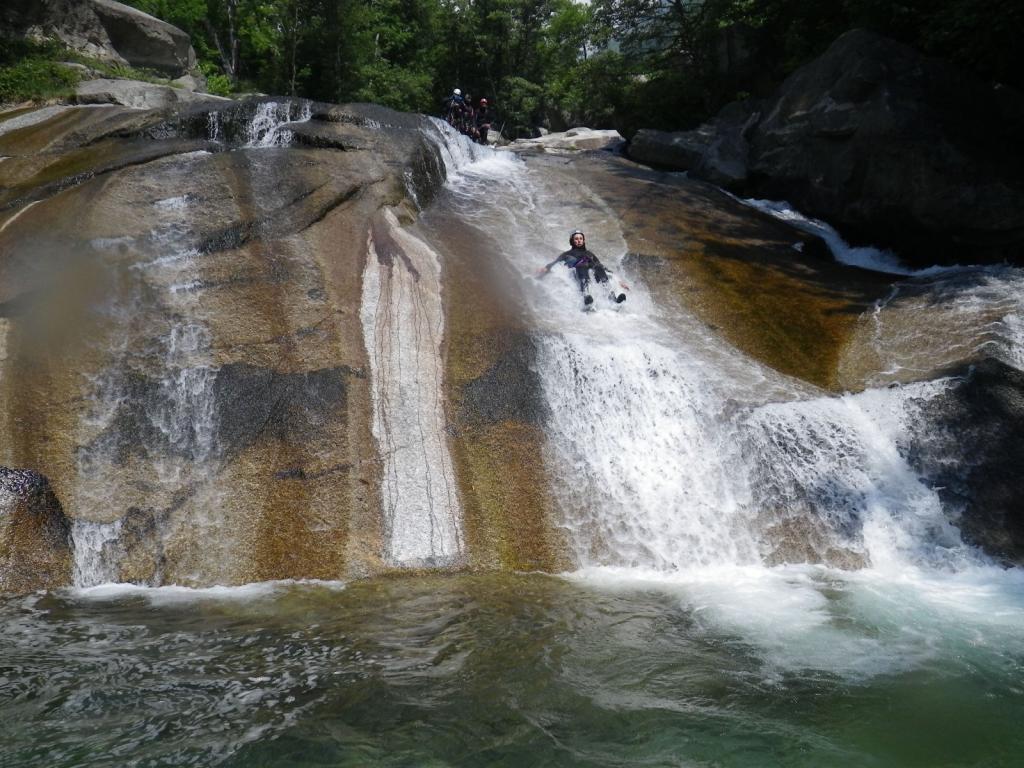 Tenersi poi sul versante dx orografico per evitare placconata estesa molto scivolosa che portano alla parte più ludica e divertente del Canyon e danno origine a tre scivoli tabogabili.
