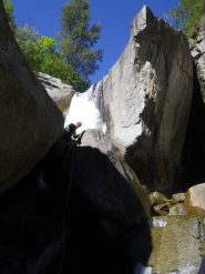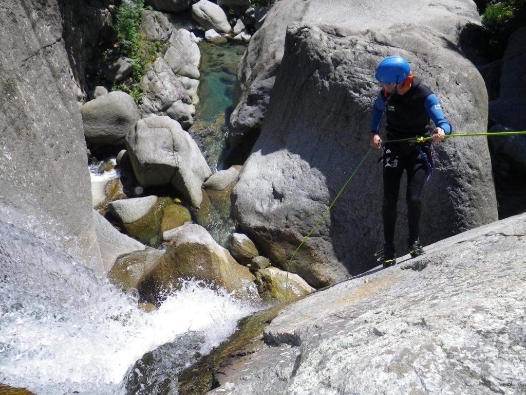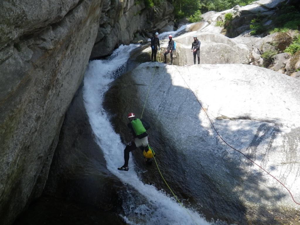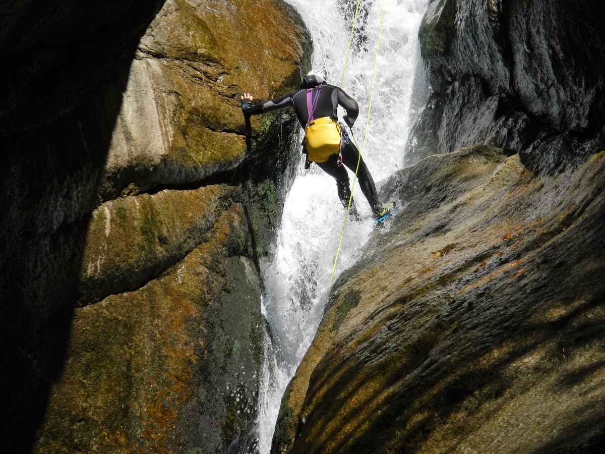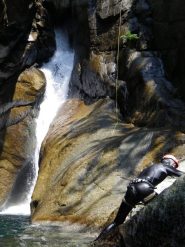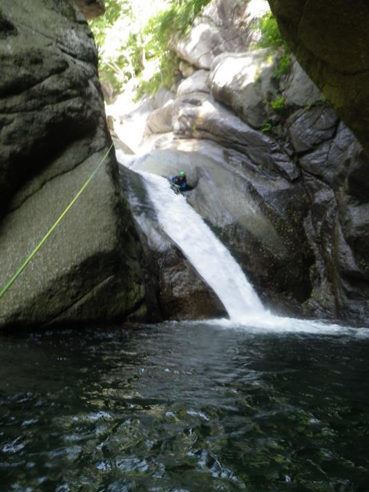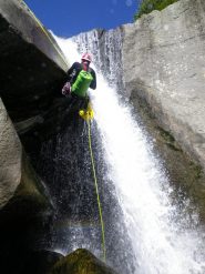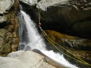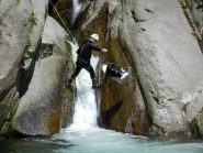 La parte sup. é tutto uno scivolo semplice e divertente poi seguono 7 calate alcune tecniche e severe. Poche disarrampicate facili e alcuni salti fino a 14m.