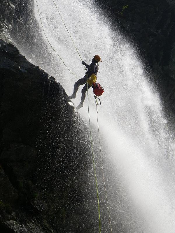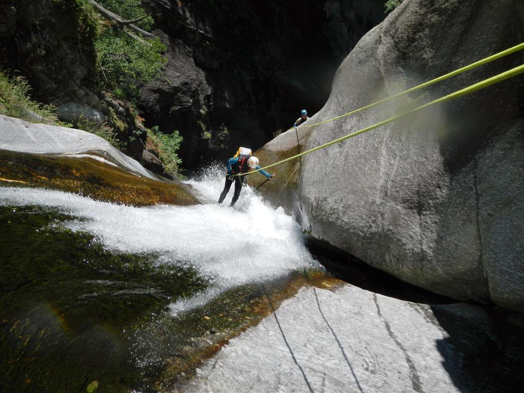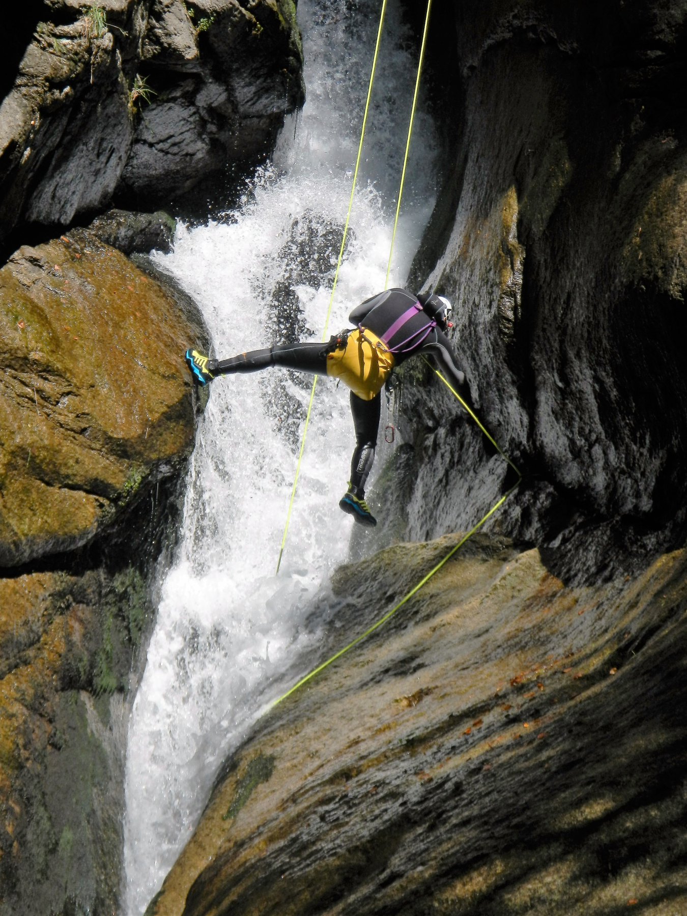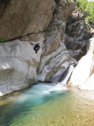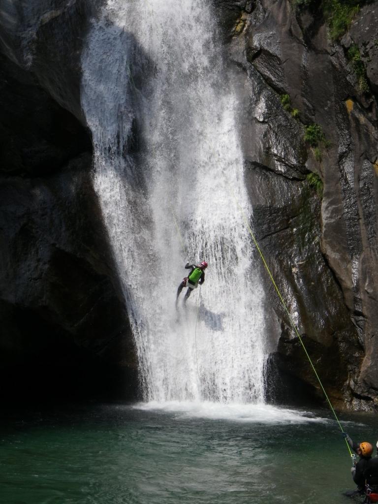 La parte sup. é tutto uno scivolo semplice e divertente poi seguono 7 calate alcune tecniche e severe. Poche disarrampicate facili e alcuni salti fino a 14m.