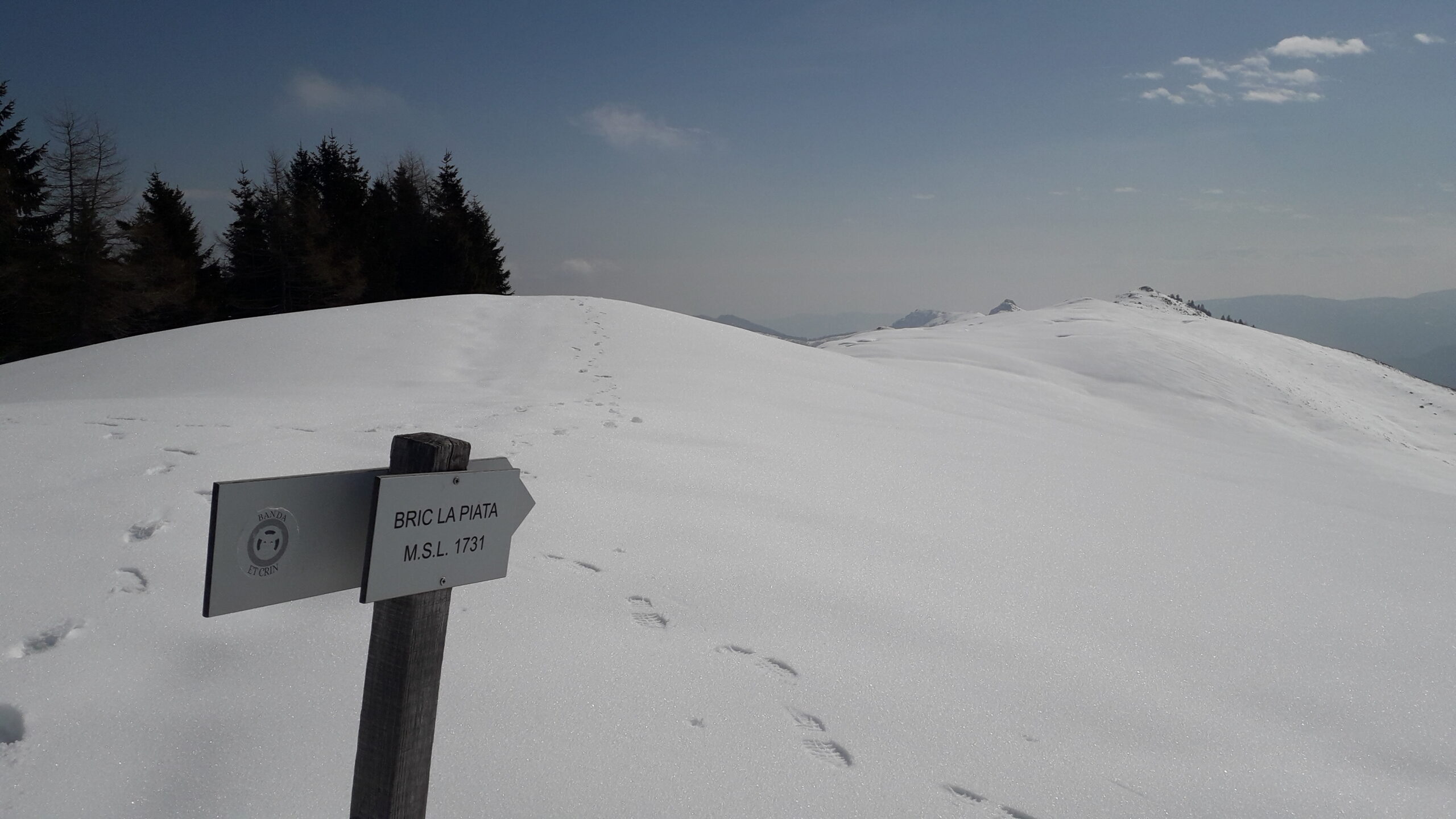 Da Danna toccati tutti e tre i Bric e rientro per il Colle di Gilba. Ciaspole inutili, ramponcini anche. Utili invece sarebbero stati gli sci.
