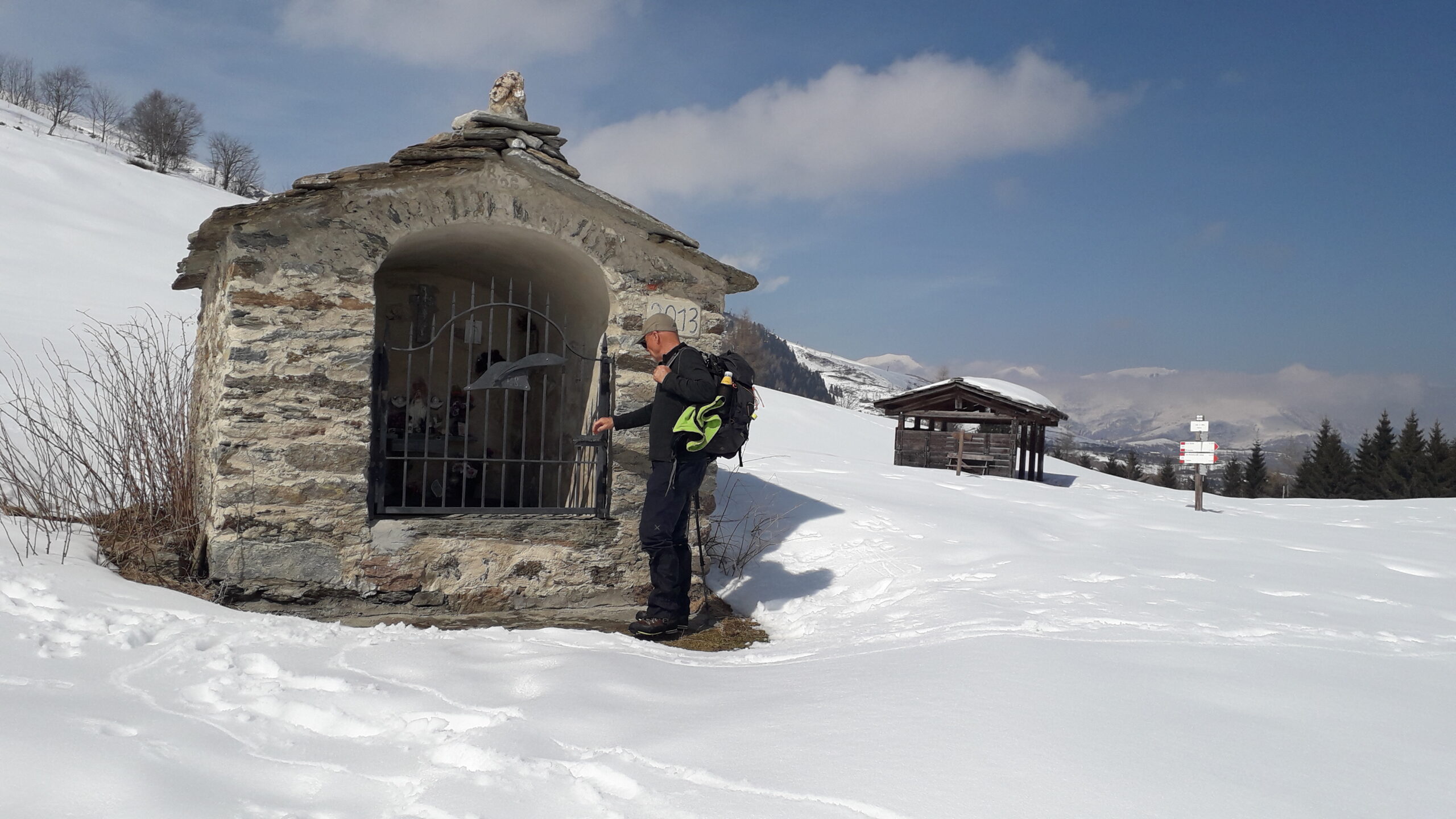Piacevole camminare nella neve su fondo duro che poi cosi tanto duro non era affatto, comunque in rilassatezza in spazi aperti e panoramici.