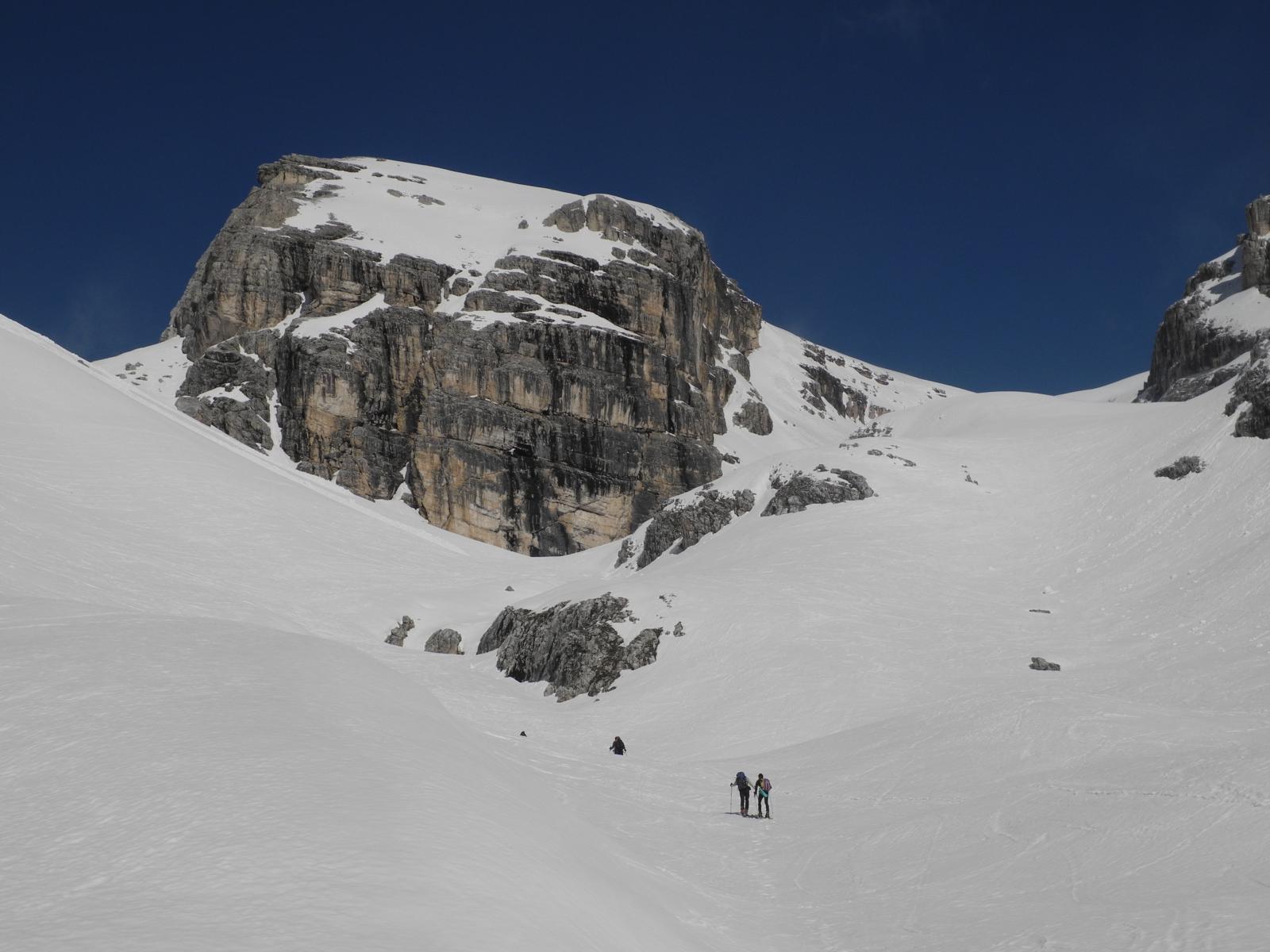 Adesso, dopo circa 1.30 ore di salita, con netta svolta a NO a 1750mt inizia la parte bella: in questo lungo vallone tutto orientato appunto a SE dove cerchi la miglior traccia o sulla sx(ombra) o a dx(sole) e facendo attenzione ai lastroni eventuali (sopratutto alla testata in alto a ca.2650 fino a 2850ca. zona ripida!)