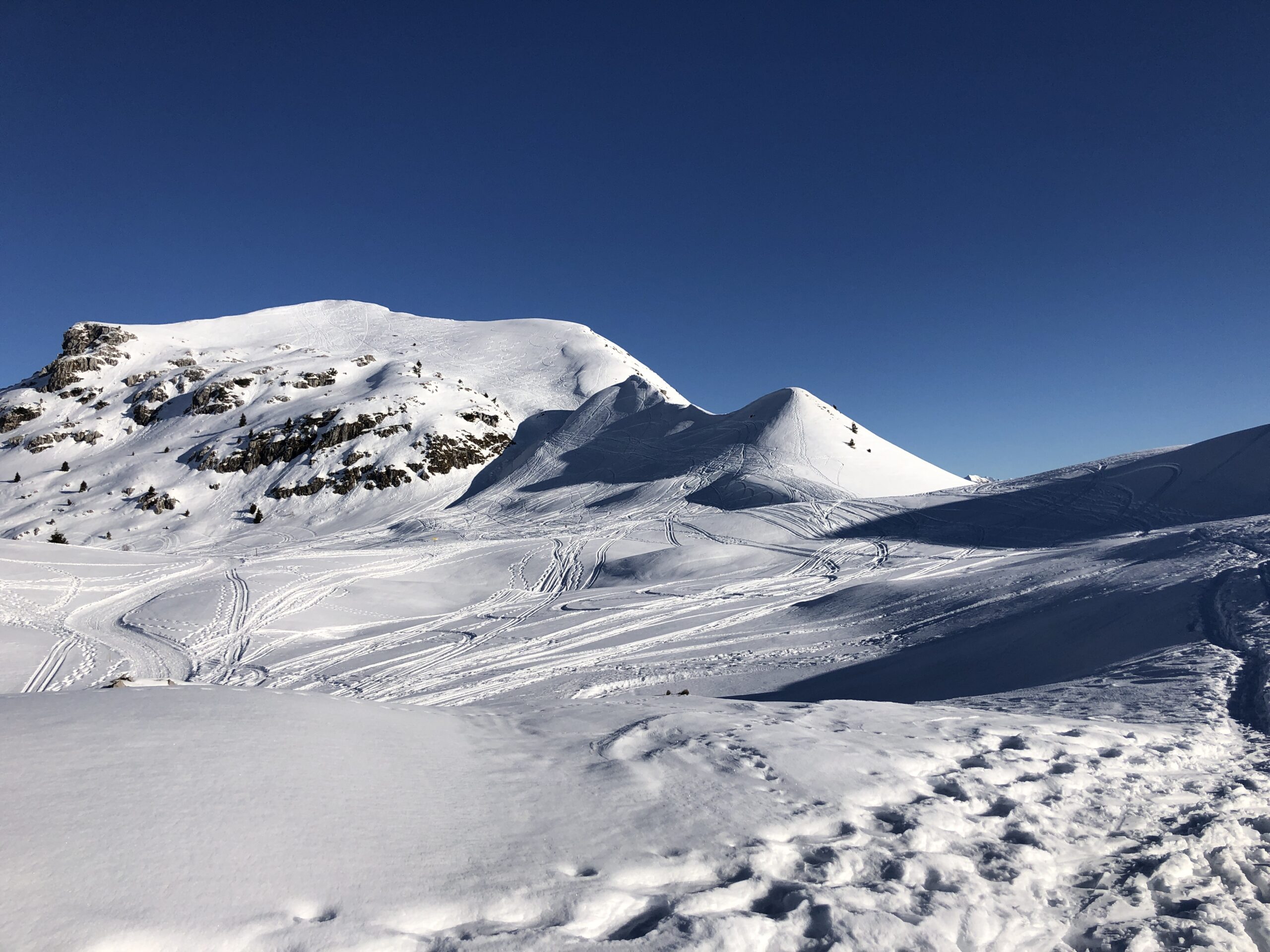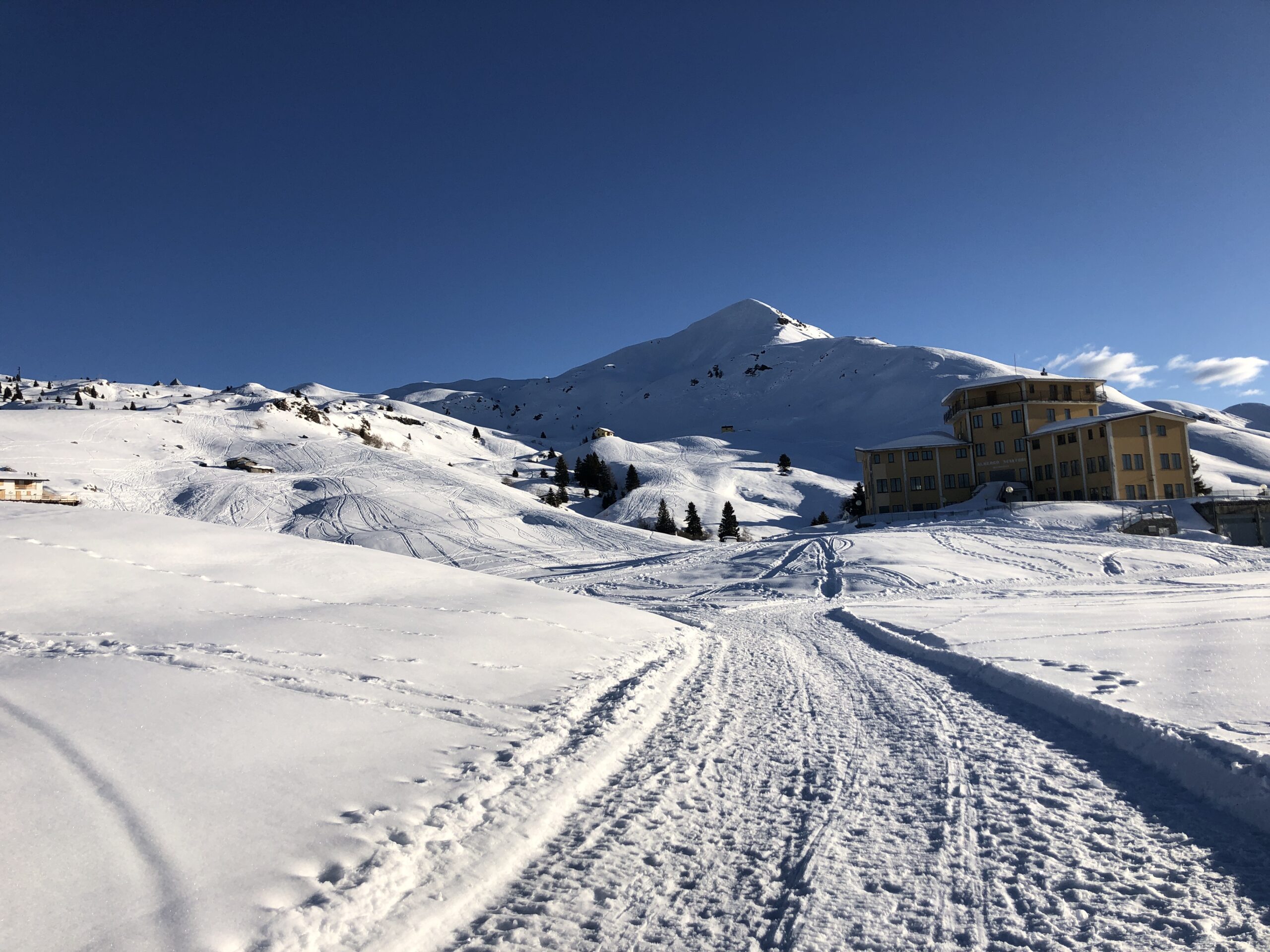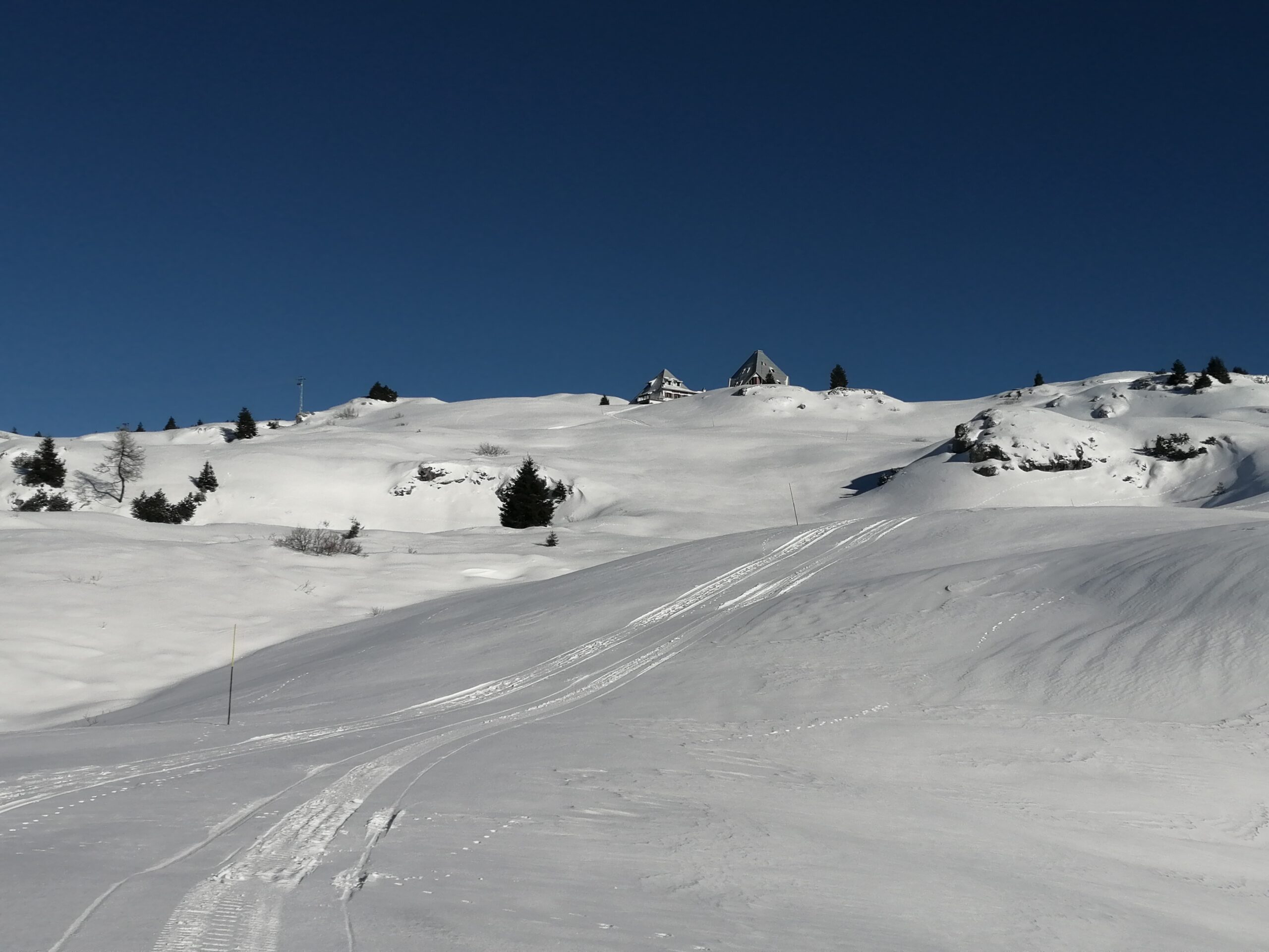 Si prosegue salendo verso nord est lungo le vecchie piste, battute dalle motoslitte dei rifugi (se aperti), e si raggiungono i rifugi Nicola e Cazzaniga-Merlini (circa 1800 m), a nord ovest del Monte Sodadura.