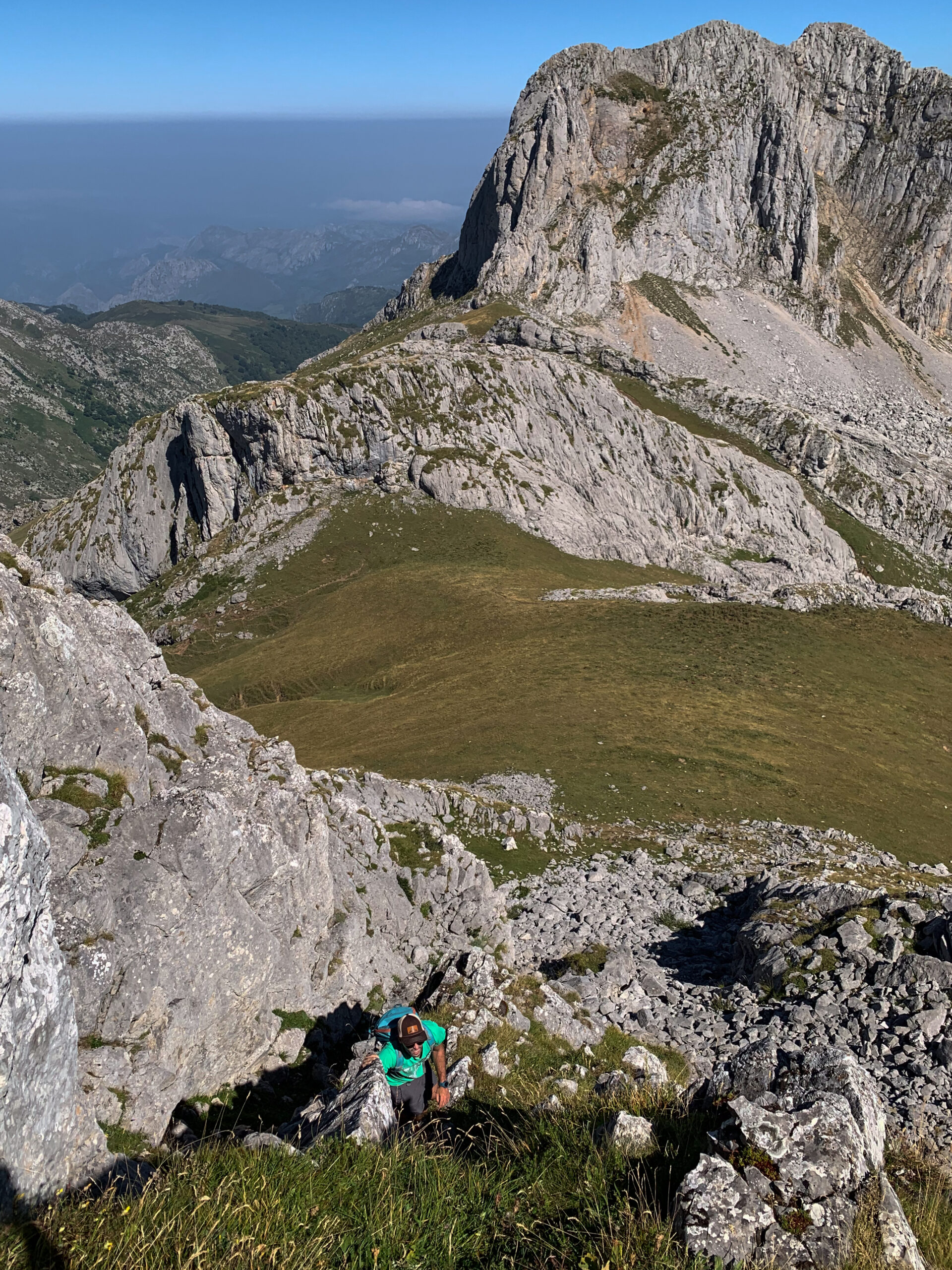 Si torna ora al colle per lo stesso itinerario di salita e lo si supera, dirigendosi verso la poco marcata sommità della Penas de Cebolleda (1894m), che si raggiunge con un paio di passi più delicati (I/II), 2h15m da S. de Sajambre.