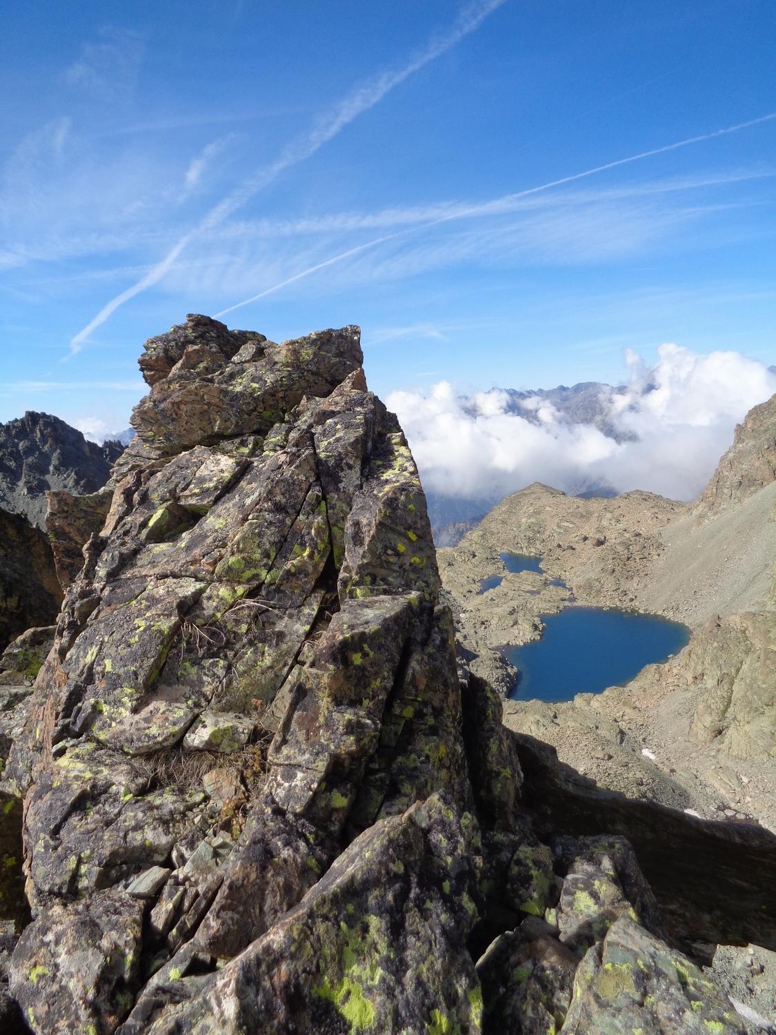 Discesa lungo il medesimo percorso o lungo la breve cresta SE (lato Po – ometti) fino al Passo delle Forciolline dove si piega a sx e si discende l’ampio ripido canalone di sfasciumi. Appena possibile piegare a sx e con un breve mezzacosta raggiungere il sentiero che sale al Passo delle Sagnette e percorso in salita.