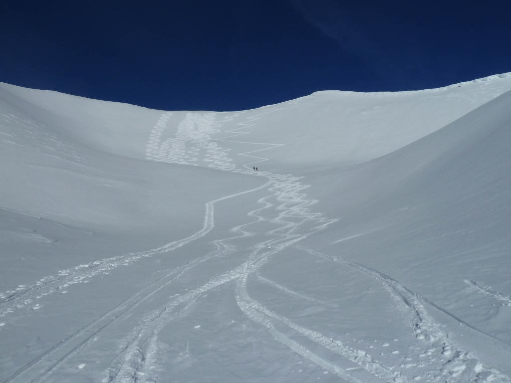 I dieci cm. di neve fresca scesa ieri hanno reso più invernale il panorama. Partiti senza una precisa meta abbiamo subito approfittato dalla bella traccia al sole che portava sulla cima delle Manse. Bellissima discesa con neve polverosa su fondo duro non sempre omogeneo ma ben sciabile.Ripellato e seguito la traccia diretta al Pierassin. Discesa in pieno nord su bella farina. Dalla cima abbiamo adocchiato una traccia di salita verso il canale centrale delle Oronaye e visto che la giornata accompagnava e la neve pure abbiamo nuovamente ripellato e risalito il pendio fino all’inizio del canale. Discesa soddisfacente nella parte alta e centrale poi da quota 2300 ci siamo tenuti sul versante sx riuscendo a raggiungere la macchina senza toccare pietre. Occhio che la neve appena scesa appaga la vista ma non le solette e quindi se si scende su zone dove prima la neve mancava prestare attenzione perchè il rischio di toccare pietre è garantito.