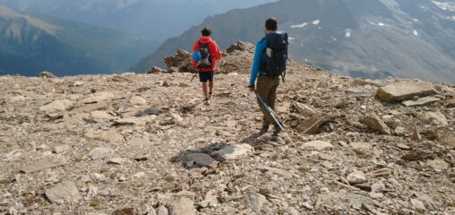 Arrivati alla base della cresta NO c’è un sentiero leggermente esposto, ma sempre largo e con ottime prese delle mani, la cima si trova a 5 minuti.