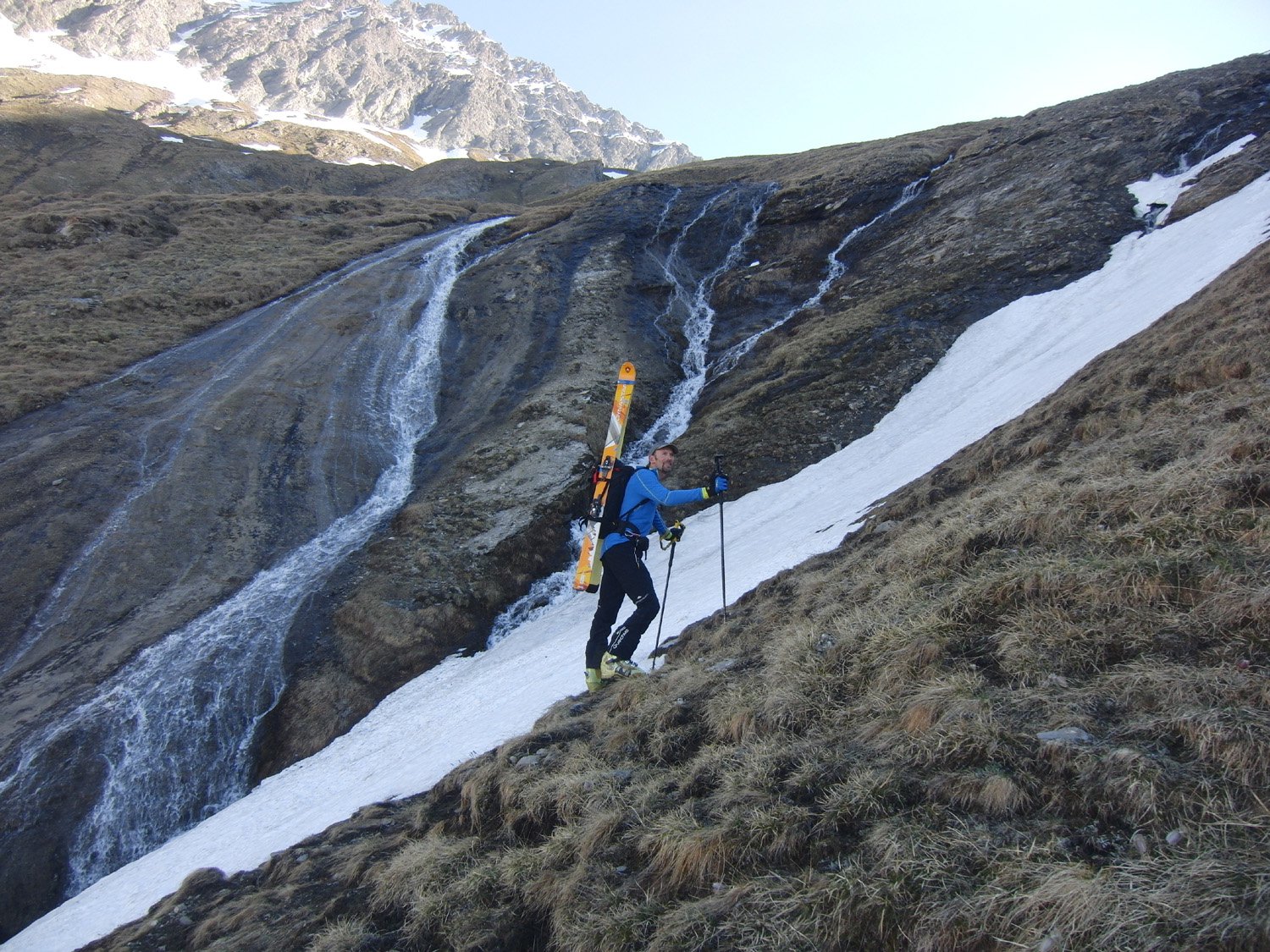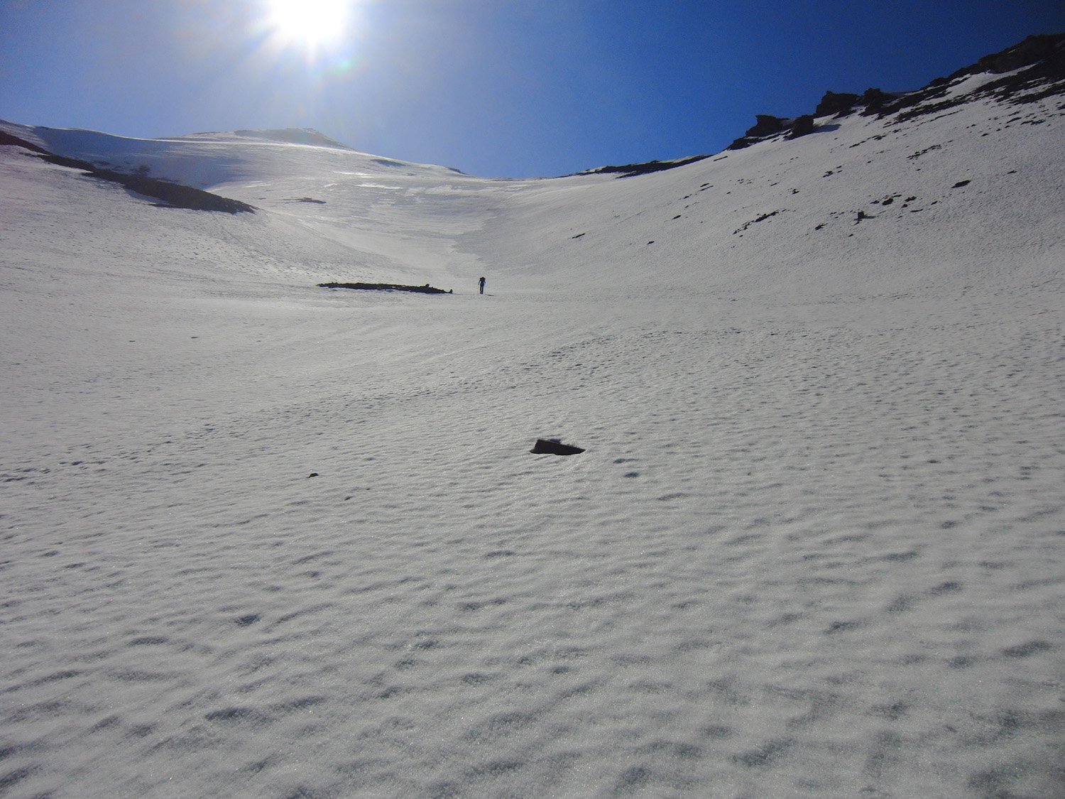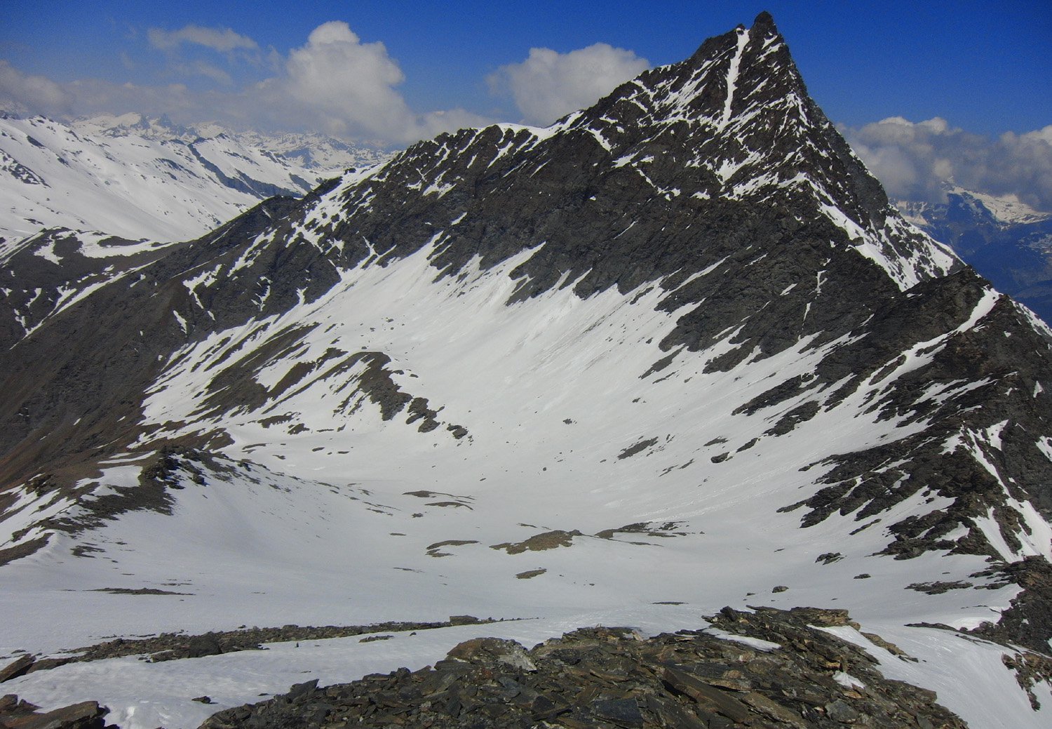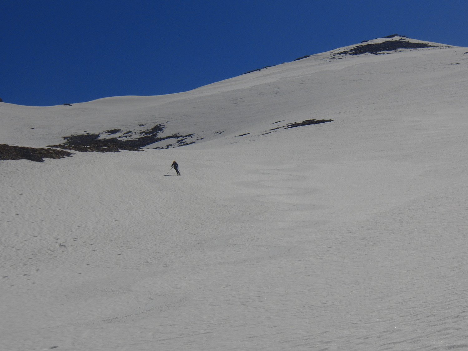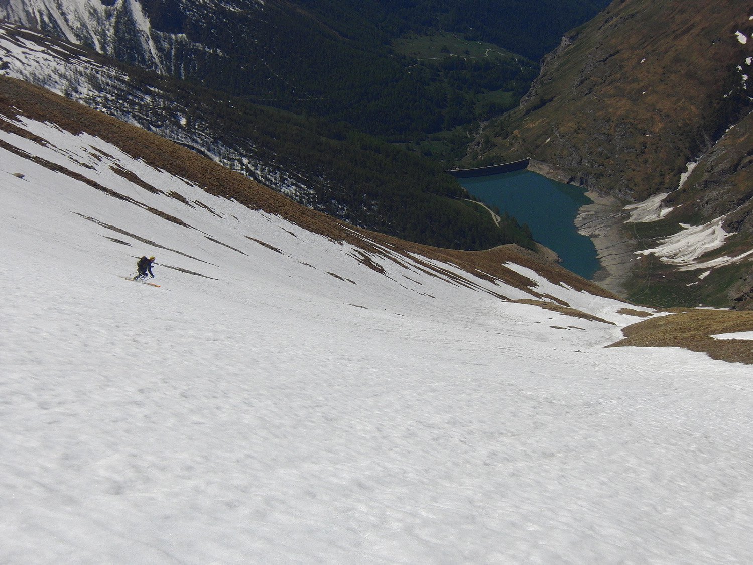 Volendo aggiungere una ulteriore discesa, dalla vetta è interessante scendere il sostenuto pendio verso il vallone di Fond per poi risalirlo.