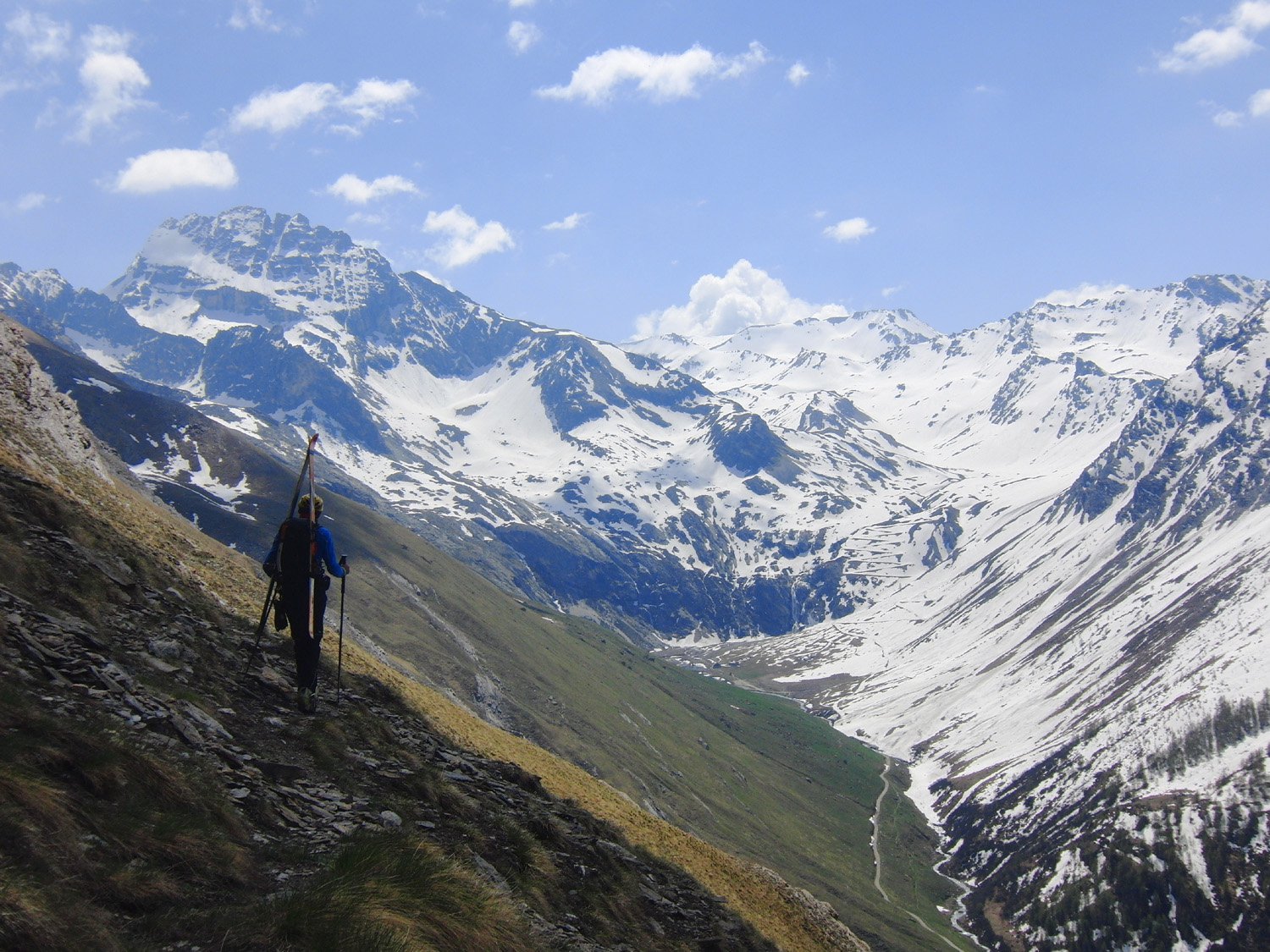Da farsi in stagione inoltrata e comunque quando i pendii bassi, fino al sentiero in piano che perviene dalle Grange d’Etiache, siano già puliti.