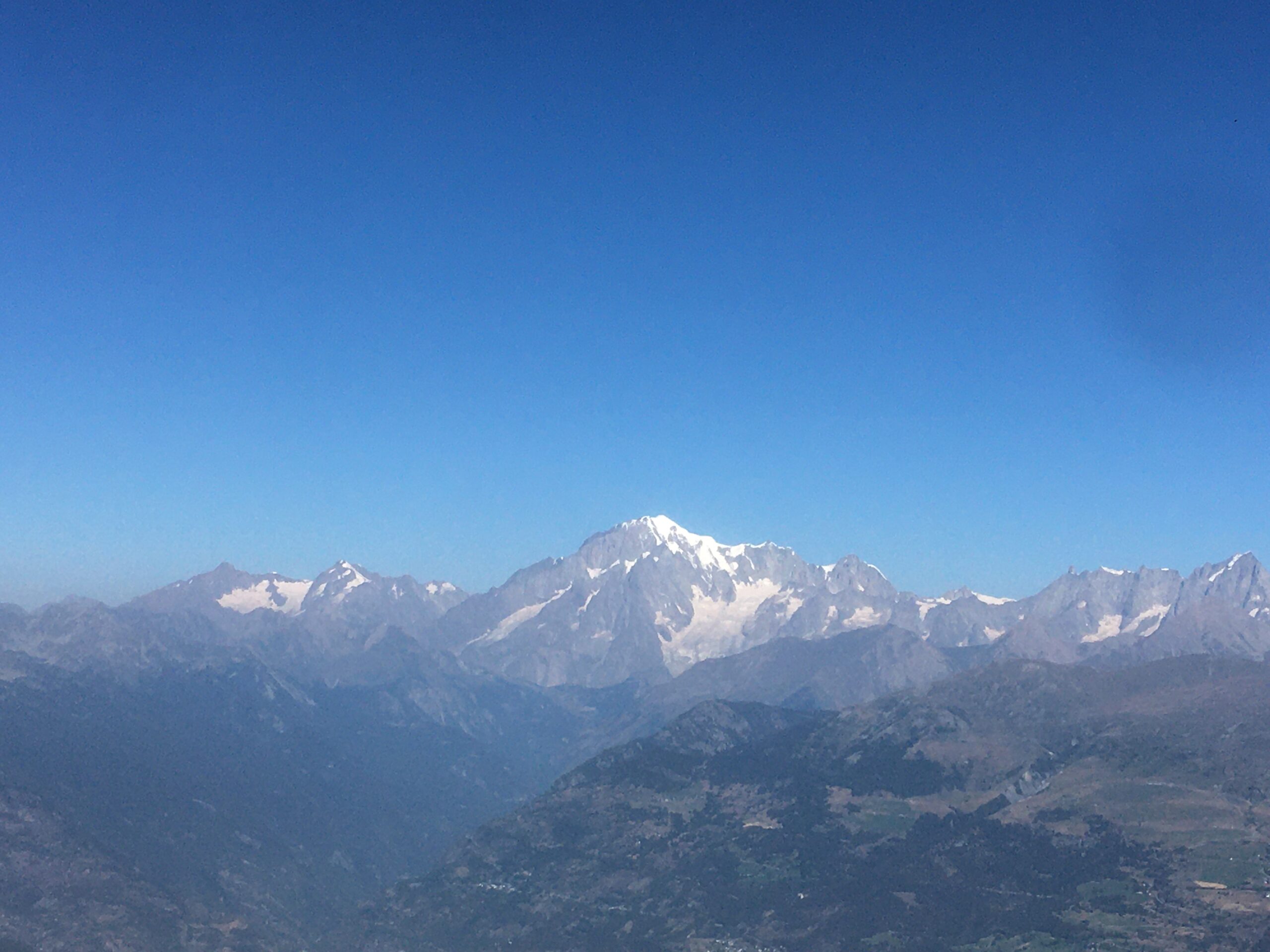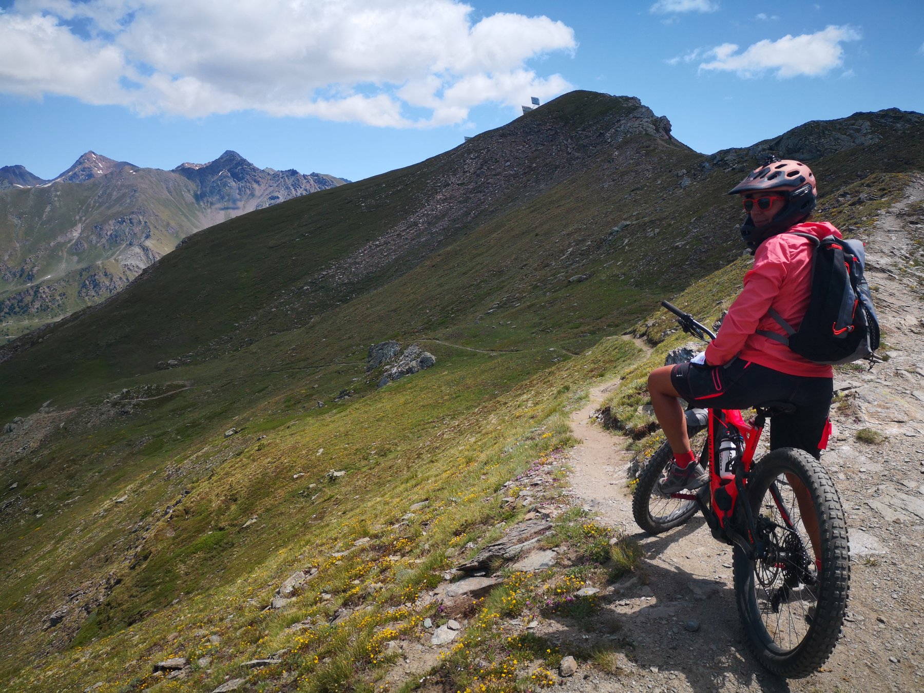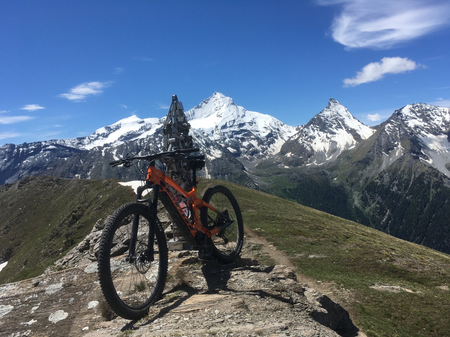Per interpoderale e poco asfalto scendere a Ozein (1450m) e risalire su ottimo sterrato fino all’ alpeggio di Champchenille a 2200m; qui resta poco da pedalare e con pazienza spingere sino in vetta alla cima sci-alpinistica più nota della valle: punta De la Pierre a 2650m.