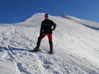Qui il vento non si è mai fatto sentire, infatti gli alberi sono ancora belli carichi. Usciti dal bosco si vede finalmente il pendio superiore che adduce alla vetta, solcato in ogni suo metro quadro da scialpinisti. La salita però si svolge saggiamente sulla dorsale di destra. Anche qui molta neve, ma a mio parere sicura, mai sentito assestamenti. Solo la parte finale, giusto in cresta, presenta neve un po’ ventata.