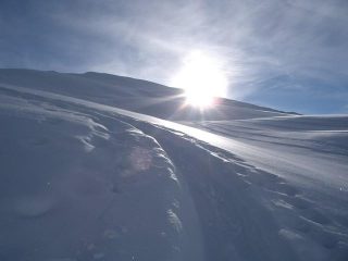 Dai 1800 m. in su neve polverosa, sotto leggera crosta, nell’insieme bella gita in sicurezza.