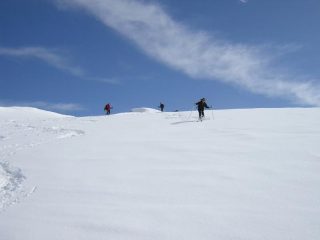 saliti dai pressi della frazione Turlin; innevamento abbondante su tutto il percorso; le temperature elevate hanno cotto, la recente neve caduta nella notte tuttavia nella parte alta abbiamo fatto parecchie curve e la neve era ancora divertente così come in basso nel bosco (peccato però che la “boschina” sia troppo fitta)