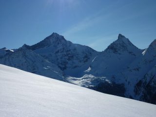 Partiti da Daillet intorno alle 9.40 arrivati in vetta dopo circa tre ore, oggi non c’era in giro nessuno, San Gaudenzio ci ha fatto un regalo doppio. Che dire nella parte bassa la traccia è su neve dura ma si sale senza rampant per il resto polvere leggera di ottima qualità, del resto Pointe de La Pierre non tradisce mai sostiene l’insostenibile leggerezza della polvere!