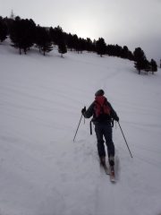 Bella traccia su tutto il percorso fino in cima,in discesa farina nella parte centrale, in alto ventata a tratti.