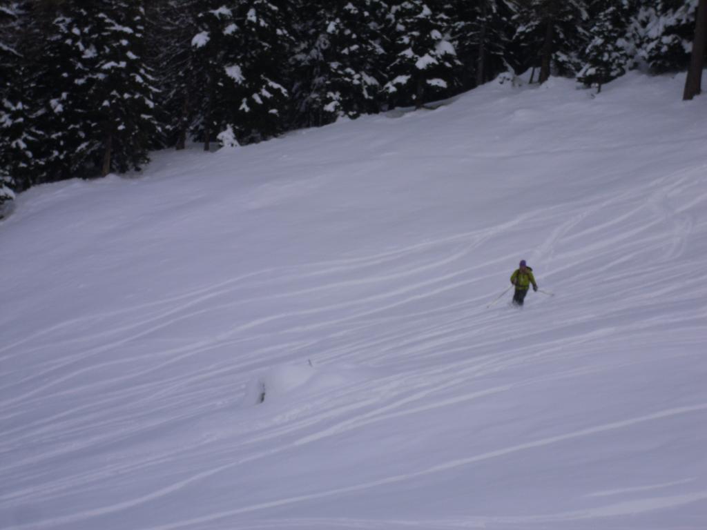 Al contrario di ieri,oggi ci siamo proprio divertiti,in compagnia di Lauretta ,Luciano e Giovanni ,oltre a scegliere le zone ancora intonse sul cupolone,abbiamo ridisceso il tratto boschivo in ottime condizioni specie sul ripido,Lauretta che non gradiva il genere oggi ha cambiato idea,speriamo che arrivi altra neve in basso…